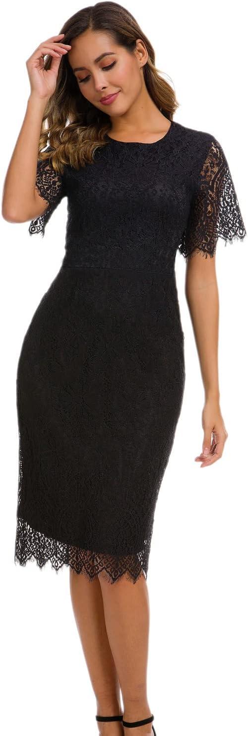 We found this dress to be a remarkable blend of elegance and practicality for cocktail occasions. Its floral lace design paired with the classic round neckline and short sleeves offers a timeless, refined look without sacrificing comfort. The knee-length bodycon fit complements a variety of body shapes, making it suitable for many attendees at semi-formal gatherings, including weddings, holiday parties, and evening dinners. Given the broad color range and sizes available, it accommodates diverse preferences and ensures a flattering silhouette with easy styling options.
