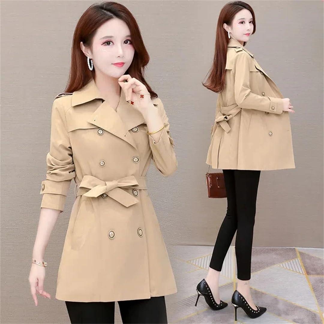 The first thing you notice is the fabric: a slightly crisp polyester that skims the skin with a faint, papery hush. The Ornrjfll Womens Button Windbreaker Long Section Korean Fashion Waist slimming Loose Coat — wich you can think of as the Ornrjfll long windbreaker — hangs long and straight, the double-breasted front giving a subtle line that keeps the drape from collapsing.As you walk, the hem sways with a light, buoyant feel and the shoulder seams lie flat, unhindered when you reach or sit. In those first moments of wear the coat feels lighter than it looks, the collar and buttons settling quietly as you move.