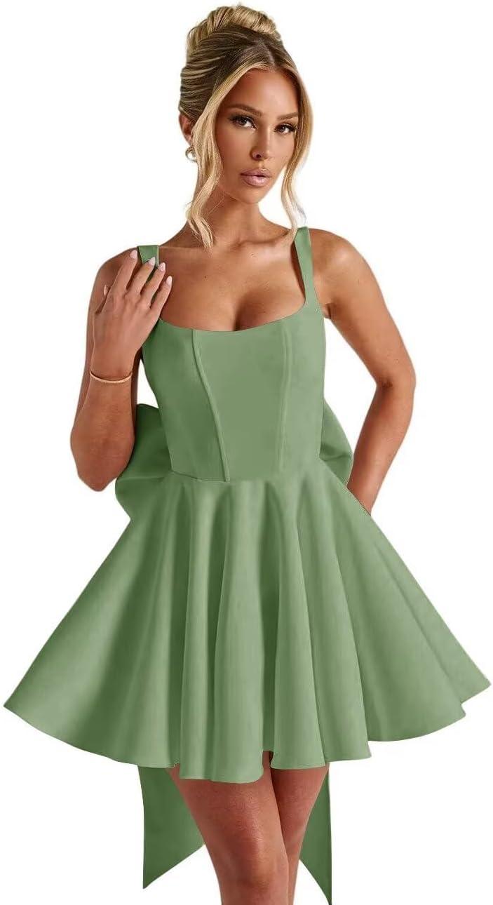 After trying out this elegant piece, we found it perfectly suited for a variety of occasions-from cocktail parties to homecoming nights. Its delicate satin fabric paired with a sophisticated bow-knot detail and flattering square neckline strikes an ideal balance between charm and class. The spaghetti straps add just the right touch of subtlety while providing comfort, making it an excellent choice for long hours of wear. Plus, the sage green hue offers a refreshing alternative to typical party dress colors, helping you stand out gracefully without overpowering your look.