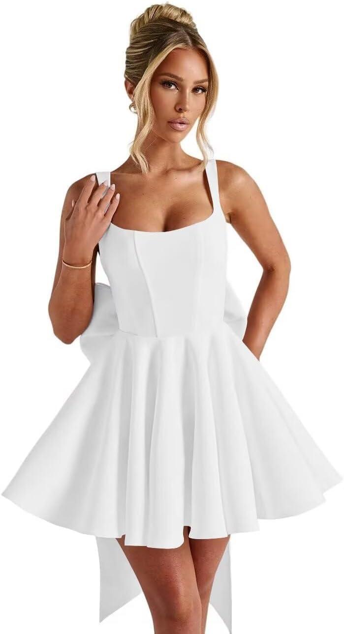 Upon examining the fabric and construction, we found the satin material to be impressively smooth and luxuriously soft to the touch. The bow-knot detail and square neckline are crafted with precision, reflecting a high level of workmanship.the satin’s sheen adds a subtle elegance, enhancing the overall aesthetic without feeling overly flashy. We appreciated how the lightweight fabric balances comfort with sophistication, making it suitable for extended wear at events such as cocktail parties or homecomings.