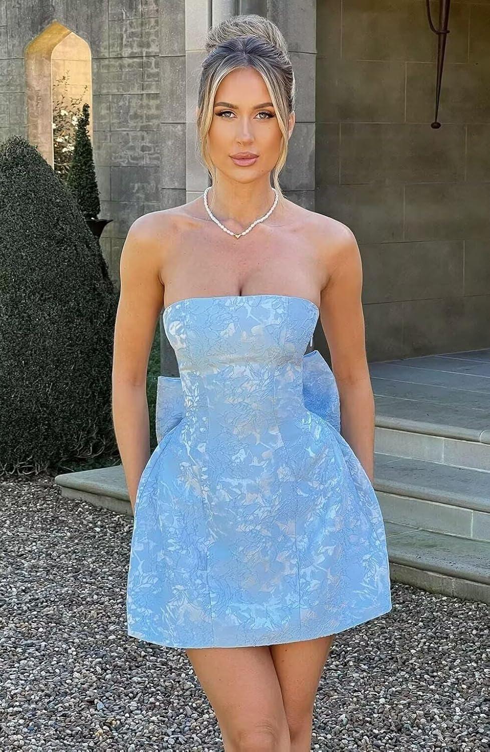 The impact of the bow goes beyond aesthetics-it also serves as a subtle focal point that balances the strapless neckline and short hemline, harmonizing the dress’s bold features.As the bow is integrated into the design rather than a seperate accessory, it avoids any bulky or cumbersome feeling, keeping the dress comfortable and easy to wear throughout evening festivities. Its versatility also means it complements a variety of accessorizing options, from delicate jewelry to statement heels, making it a practical yet stylish choice for different tastes and occasions.