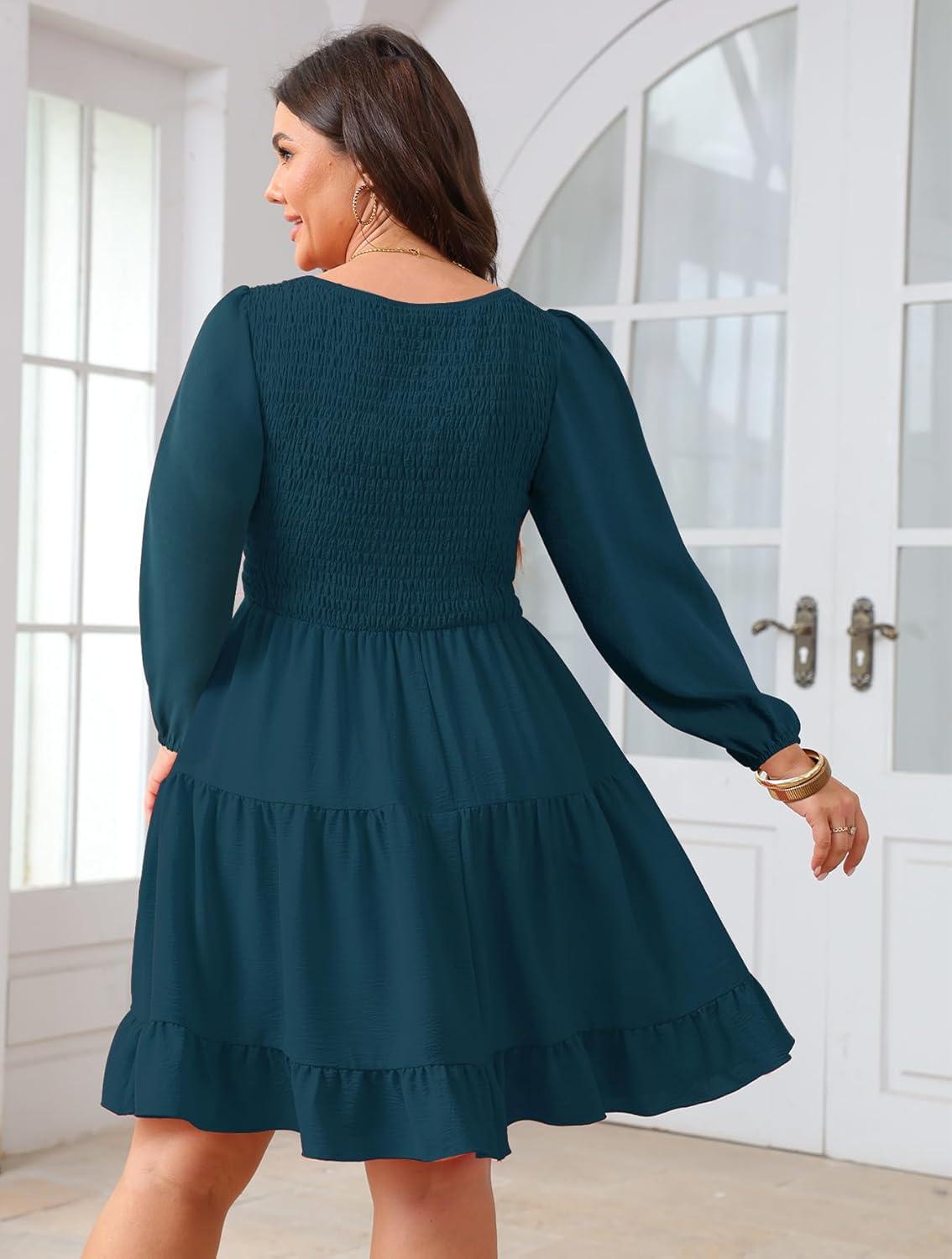 I wore the SCOMCHIC plus-size mini for several days to see how it fares in ordinary life — errands, a casual office day, and a low-key evening out. The long sleeves and smocked back made it surprisingly cozy and easy to layer, while the sweetheart neckline, ruched bow bust, and ruffled hem give it a vintage, boho feel that sways when you walk. At mini length you’ll likely pair it with tights or boots for cooler weather, but left bare it’s just as at home for brunch or a date night. Below I’ll walk through fit, fabric, and how it performed in real situations so you can tell whether it suits your wardrobe.