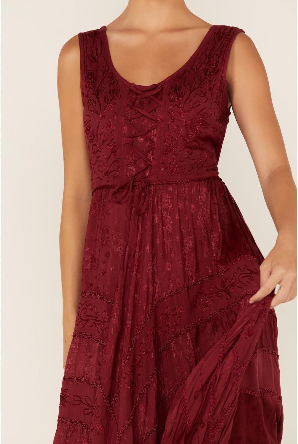 The lace-up front is the defining feature of this sleeveless dress, seamlessly combining style with adjustability. Its intricate lacing not only adds a bold, vintage charm but also allows for a customized fit that flatters various body shapes. This design detail enhances the dress’s visual interest, making it a standout piece whether you’re dressing up for a casual day out or a special evening occasion. The full-length silhouette paired with tiered skirt panels further accentuates the lace-up element, creating a graceful flow that moves effortlessly with you.