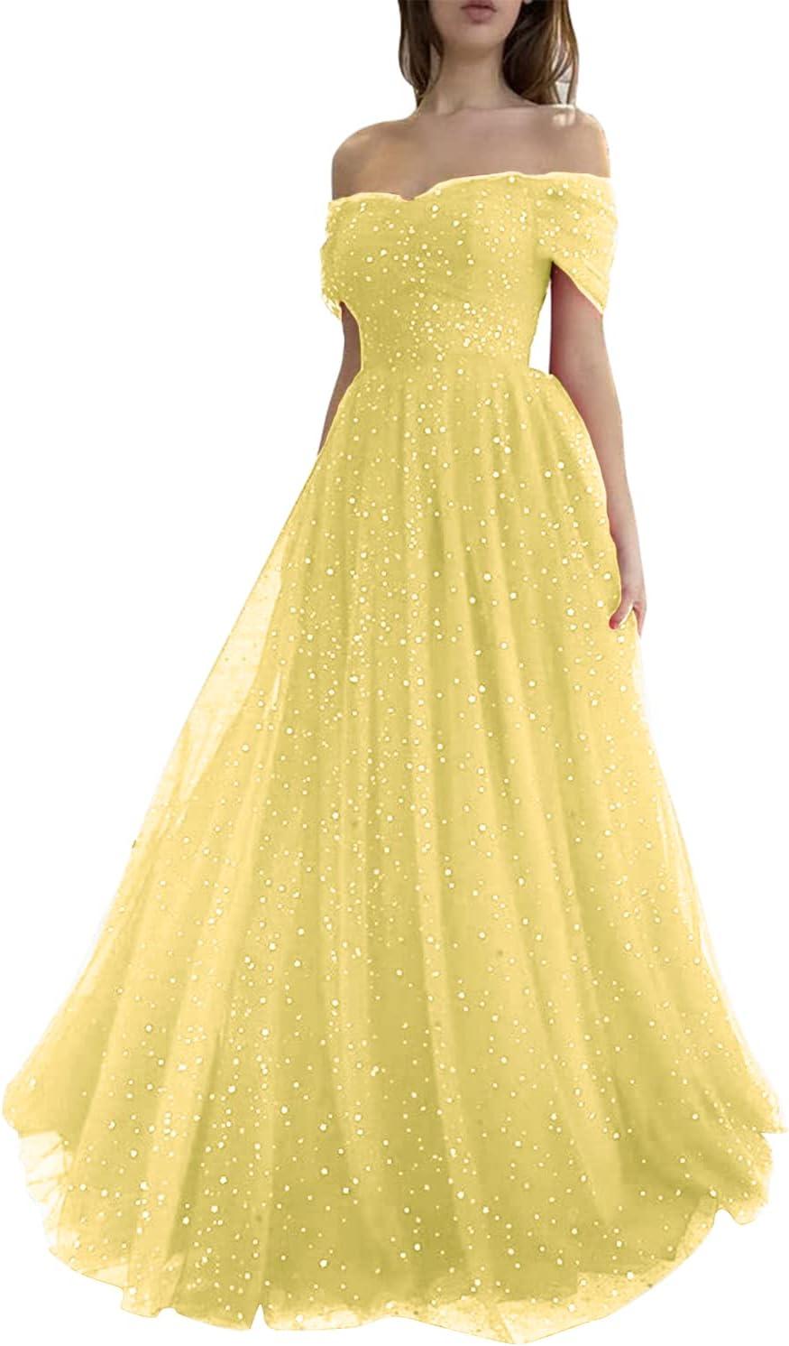 Slipping into the Sevintage sparkly Tulle Prom Dress — the off-shoulder pleated evening gown — you immediately notice ⁣the tulle: softly brushed against yoru skin, layered enough to hold shape without feeling stiff. As you move down a hallway the‍ pleats articulate one by one and the⁢ skirt falls with a steady, measured sway rather of billowing; there’s a faint rustle underfoot that reads lived-in rather than fragile. The bodice sits with‌ a contained​ structure,⁢ seams lying flat when you shift ⁢into a chair, and the off-shoulder⁤ band tucks in with a gentle, ‍unobtrusive tug ⁢rather than digging.Light finds‌ the ⁤sparkles in ⁢brief, scattered​ catches, so the dress carries a discreet visual weight — present, but‍ not shouty — ‌and those first few steps ⁤make you pay attention to how‌ the fabric negotiates real motion.