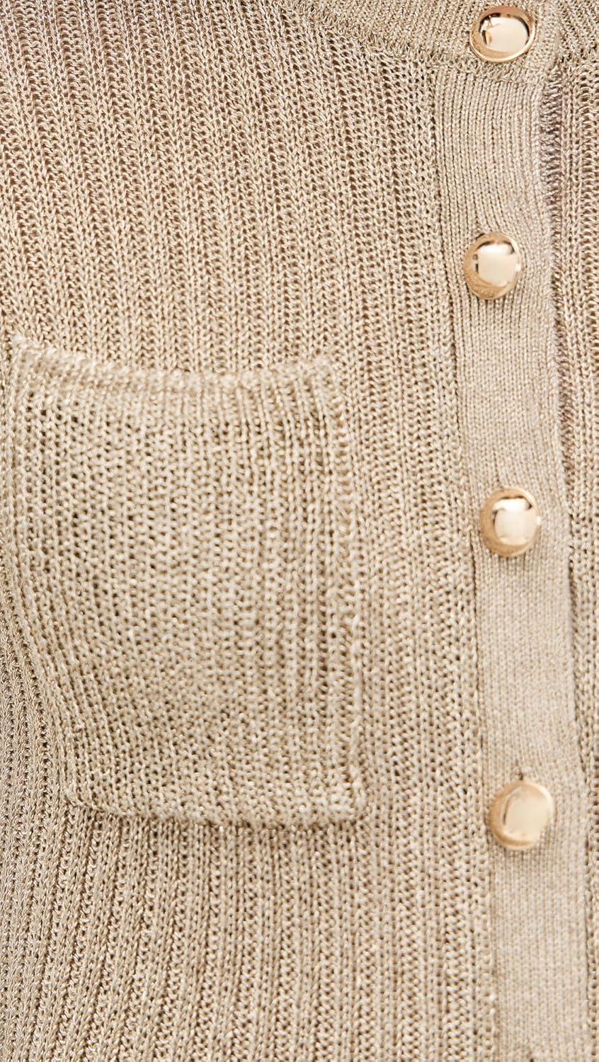 The dress captivates with its shimmering gold metallic knit, creating a striking visual that’s both bold and elegant. The intricate knit pattern adds texture and depth, ensuring the fabric catches the light exquisitely from every angle. Its silhouette is thoughtfully crafted to flatter, featuring a mini length that balances allure with sophistication. We appreciate how the dress combines contemporary style with a subtle nod to vintage glamour, making it versatile for cocktail parties or upscale events.