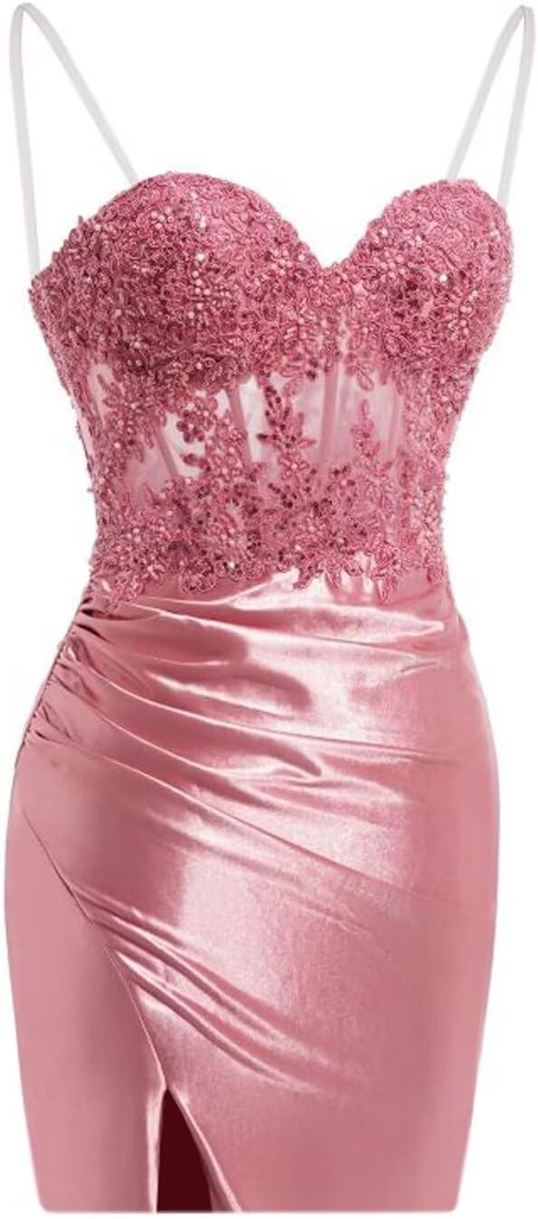 this dress ​beautifully adapts to a variety of silhouettes ‍thanks to ‍its mermaid cut and corset back design. For those‌ with​ an hourglass figure, ⁢it enhances curves by hugging the bust, waist, and hips, creating a seamless, elegant line. On pear-shaped bodies, the fitted bodice paired ⁣with the ‌satin ‌fabric’s slight stretch balances the hips while ‍the slit adds ⁢an extra touch of movement and ​grace. for teens with a straighter⁤ frame, the lace appliques and spaghetti straps offer delicate detailing that adds dimension, while the floor-length hem elongates the⁤ legs, ⁢giving an overall slender appearance.