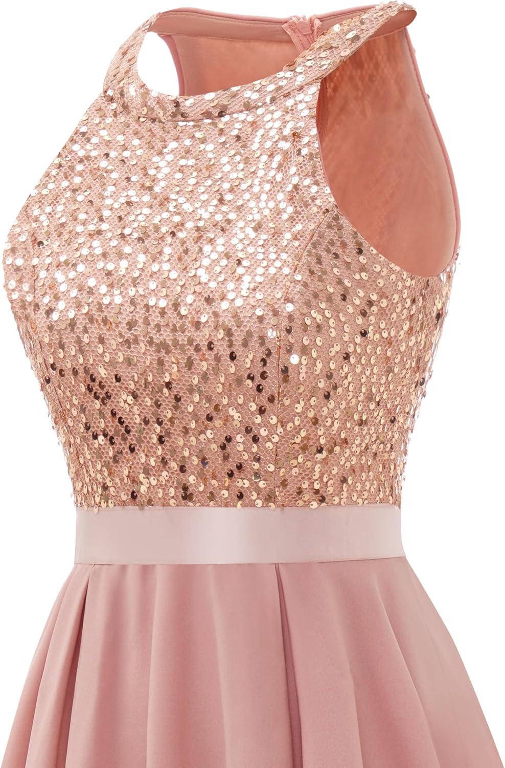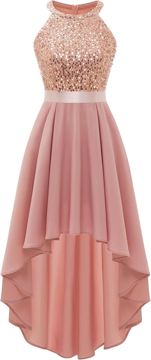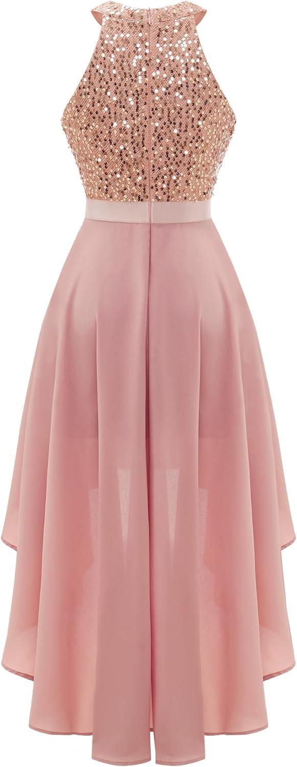After putting this dazzling sequin halter dress through its paces, we found it strikes an excellent balance between glamour and comfort.The unique hi-lo hem truly sets it apart, giving a modern flair while allowing for easy movement throughout the night-perfect for dancing at weddings or making a grand entrance at formal events. The sparkling sequins catch the light beautifully, ensuring you’ll stand out without feeling weighed down thanks to its lightweight design. We also appreciated how versatile it is indeed; pairing effortlessly with heels or delicate accessories, making it an ideal pick for occasions ranging from homecoming to cocktail parties.