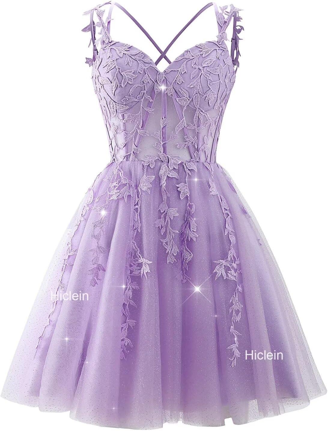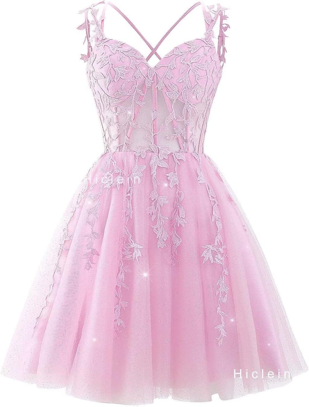 After exploring the details and style elements, we believe this dress stands out for its youthful charm and elegant sparkle. the delicate lace applique combined with glitter tulle adds just the right amount of glam without feeling overwhelming, making it perfect for homecoming or any special occasion. Its spaghetti straps and short, flirty silhouette offer a comfortable yet flattering fit for teens who want to shine and move freely. Plus, the variety of trendy colors-from blush pink to mint green-ensures there’s a shade to match various skin tones and personal styles.