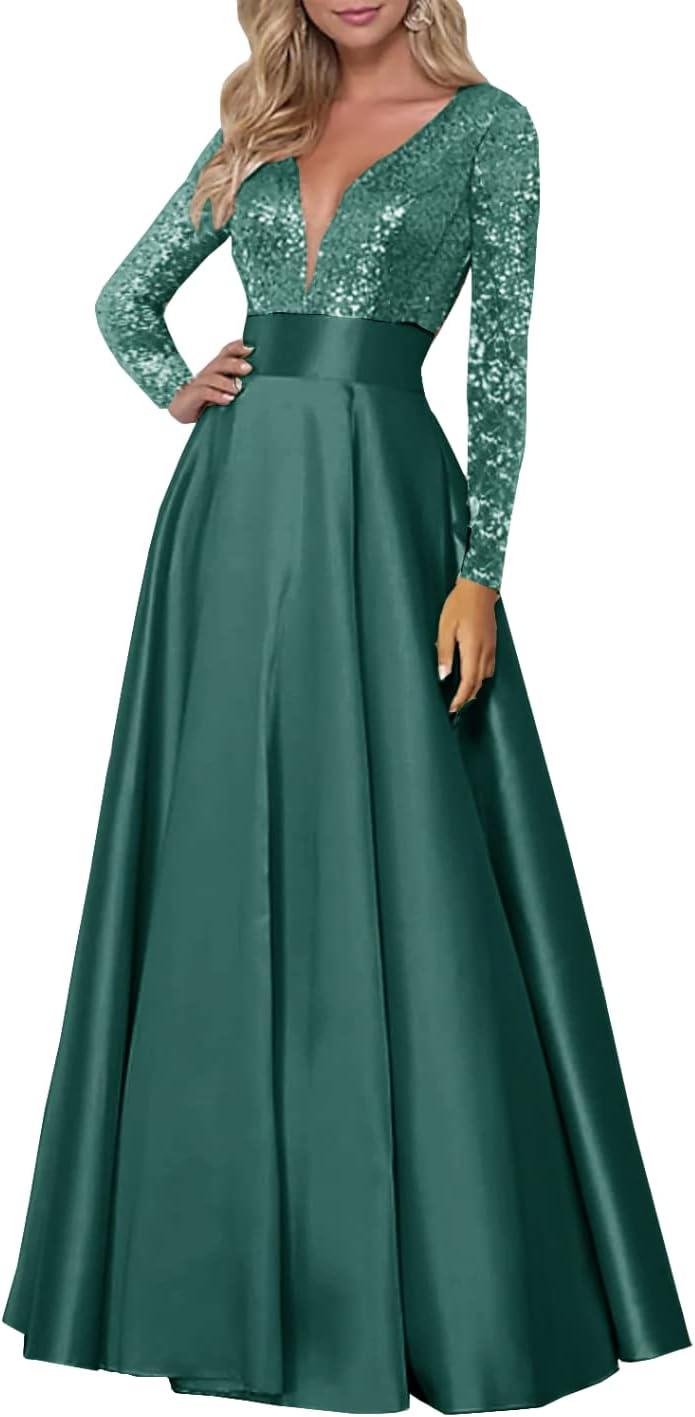 With its shimmering sequin detail and elegant satin fabric, this ​gown effortlessly⁤ elevates any⁣ evening look. The deep V-neckline beautifully frames the décolletage,⁤ making it perfect for ⁢pairing⁢ with delicate necklaces or ⁤statement​ drop earrings.‍ We ‌recommend ​styling it with​ sleek heels and a minimalist clutch⁤ to keep the spotlight on the dress’s eye-catching shimmer. The long​ sleeves‌ add a touch⁣ of sophistication, while the convenient pockets are perfect‌ for carrying essentials ⁢discreetly-an unexpected yet functional feature that blends ⁢style with‍ practicality.