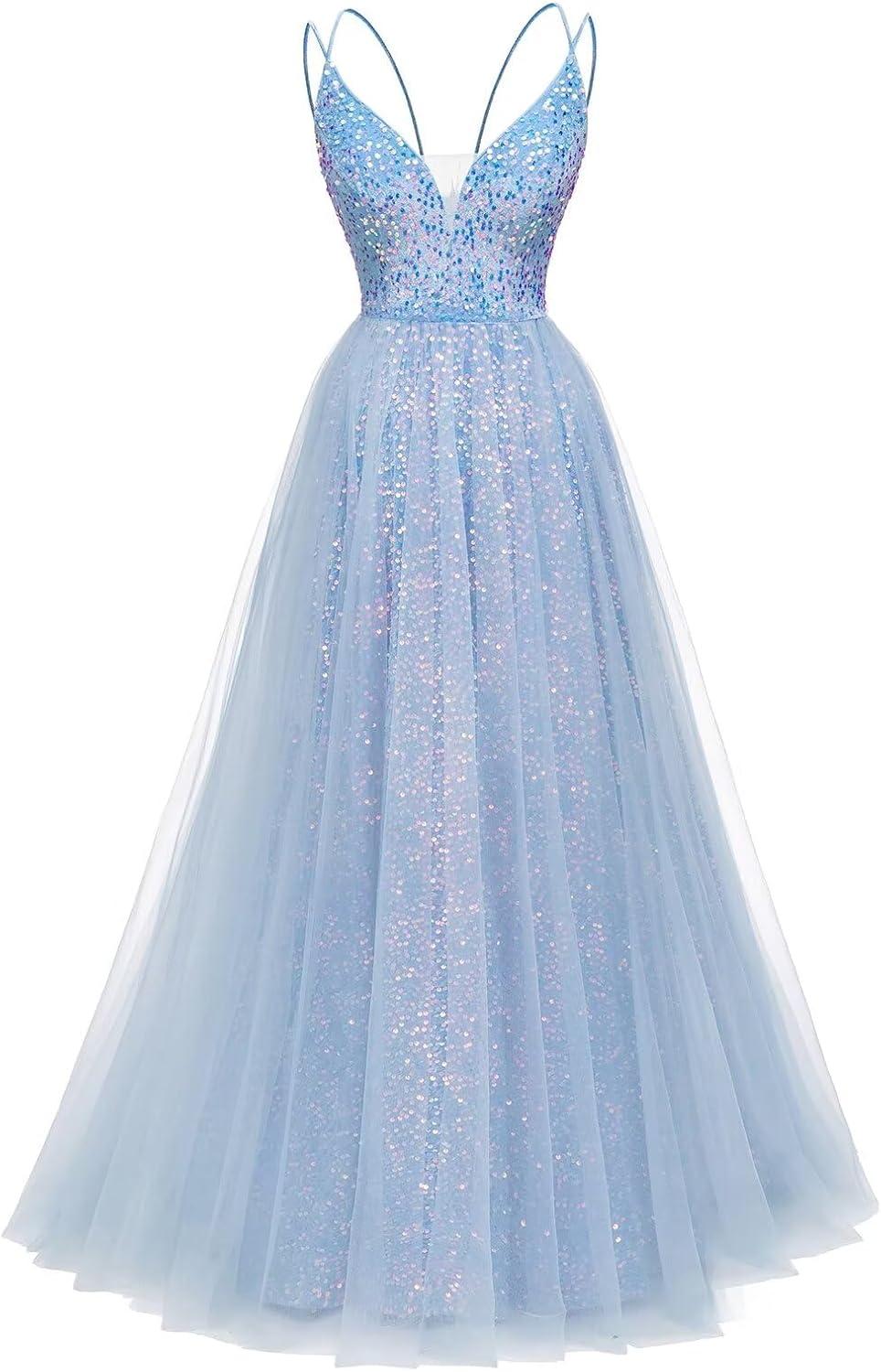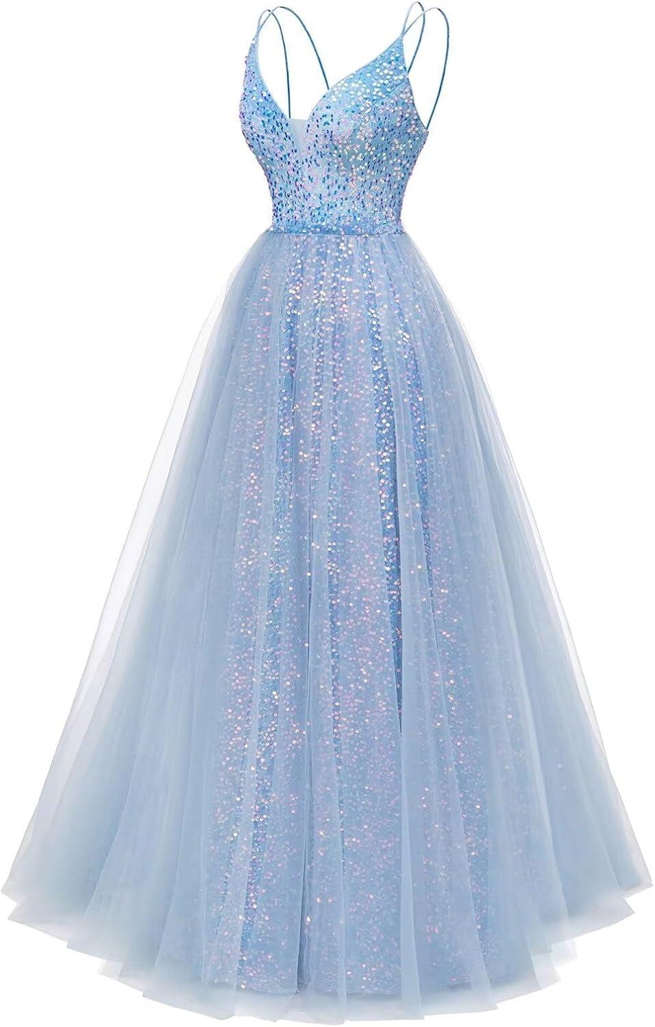 this gown strikes a gorgeous balance between classic elegance and contemporary sparkle. The soft velvet sequins paired with delicate tulle create a luxurious texture that feels as good as it looks. Its flattering A-line silhouette and natural waistline ensure comfort and confidence throughout the evening, while the floor-length design adds a graceful finish. The v-neck and spaghetti straps offer just the right amount of allure without being over the top, making it a versatile choice for many formal occasions.