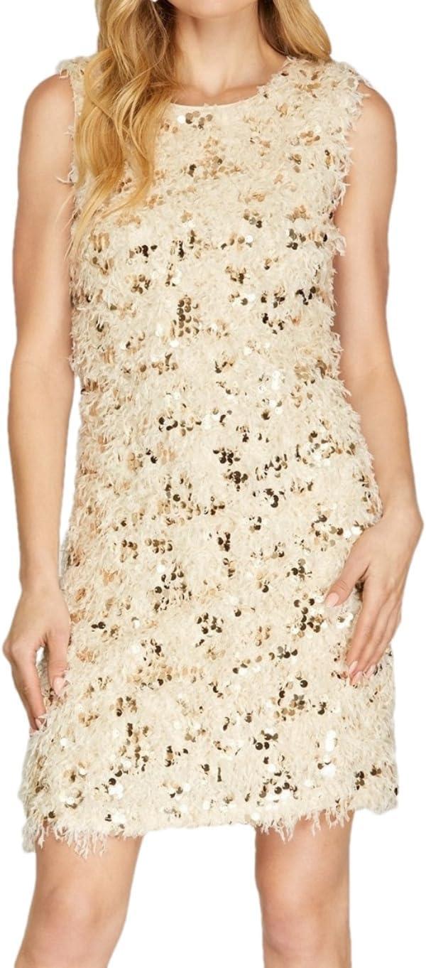 When it comes to occasion versatility,this dress truly stands out. Its sleeveless design and sparkling sequin detail give it a festive edge that works perfectly for cocktail parties and evening events during the fall and winter seasons. The crewneck silhouette keeps the look balanced, allowing it to transition effortlessly from semi-formal gatherings to holiday celebrations. We appreciate how the lightweight fabric layers smoothly under a tailored blazer or a chic faux fur coat, adding warmth without compromising style.