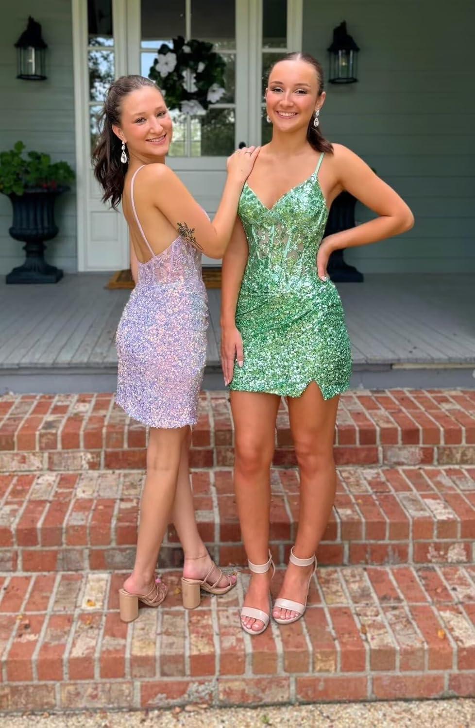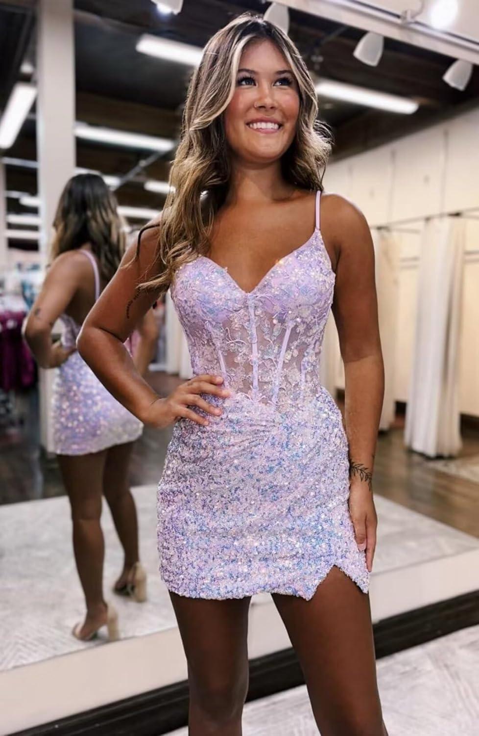 Our experience with this elegant piece combines the perfect balance of glamour and comfort, designed specifically for juniors looking to make a statement at homecoming or any formal evening event. The sleek spaghetti straps and a flattering V-neckline beautifully frame the shoulders and collarbone, while the tight, bodycon fit accentuates curves without sacrificing ease of movement. The dress’s short length and daring slit add a youthful, playful touch, making it ideal for teens seeking a modern yet sophisticated party look. The sparkly sequins paired with delicate lace appliques create a textured, shimmering effect that catches the light with every step, elevating the overall aesthetic to something truly special.