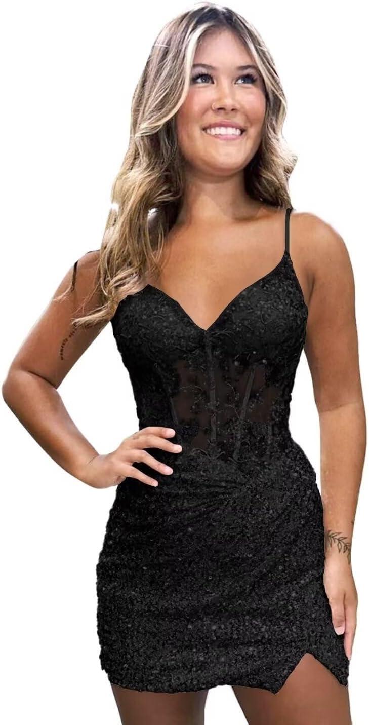 After trying on and assessing the Lace Appliques homecoming Dresses for Juniors Cute Spaghetti Straps Short Prom Dresses with Slit Tight Sparkly Sequin Formal evening Party Dress for Women Black US4, here’s a balanced look at what stood out to us: