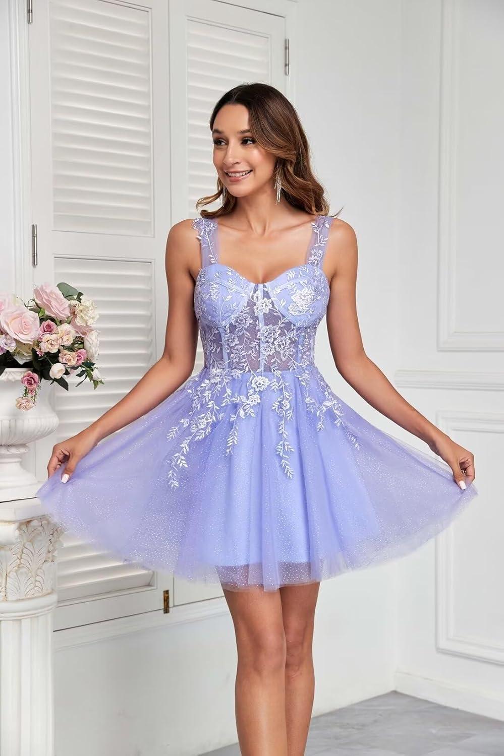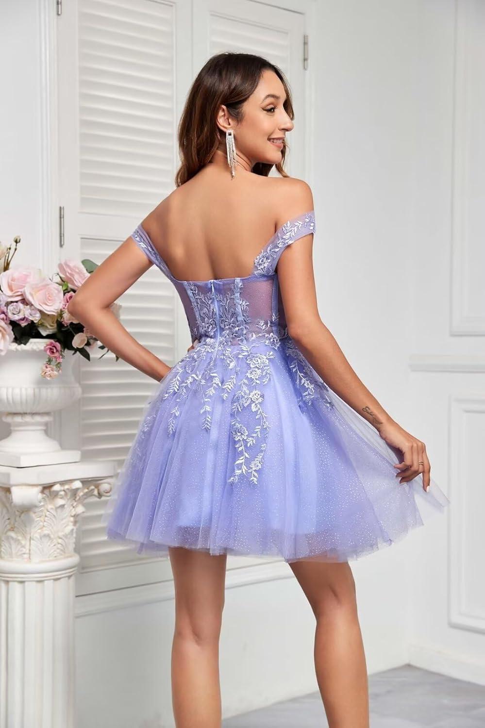This dress stands out as an excellent choice for teens and juniors who want to combine elegance with a youthful vibe. Its off-shoulder design paired with delicate lace appliques and sparkly tulle fabric creates a flattering silhouette that is perfect for formal occasions like homecoming, graduation parties, or cocktail events. If you’re looking for a short dress that balances sophistication and playful charm while ensuring comfort throughout the evening, this option should definitely be on your shortlist.
