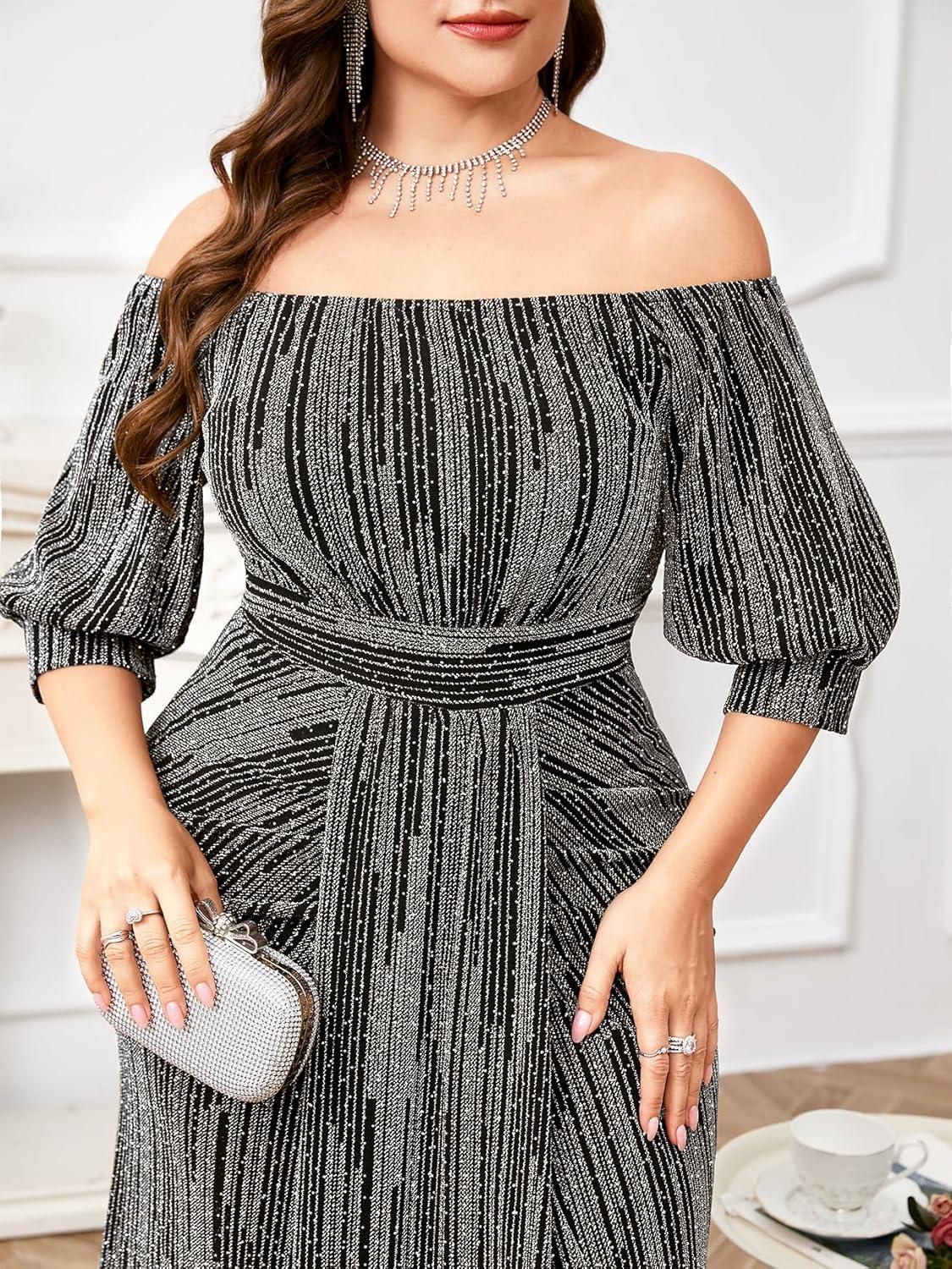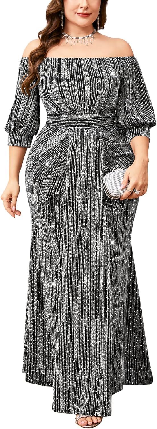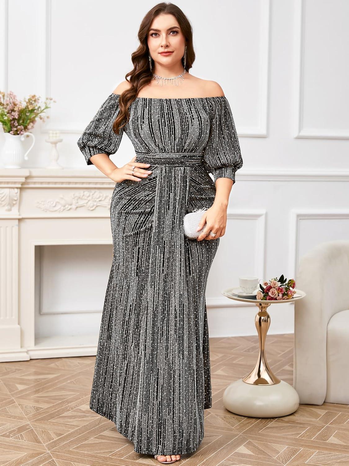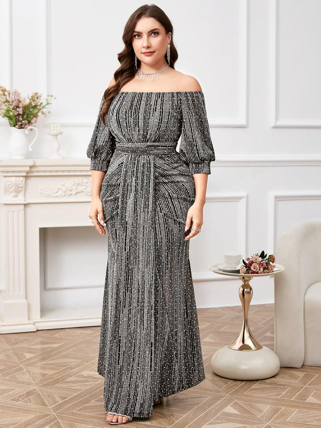After trying on the Plus Size sparkly Formal Dress off Shoulder Puff Sleeve mermaid Maxi Dress, we gathered our thoughts on what truly shines and where it could use a touch more finesse. Here’s an honest breakdown to help you decide if this gown is your next showstopper.