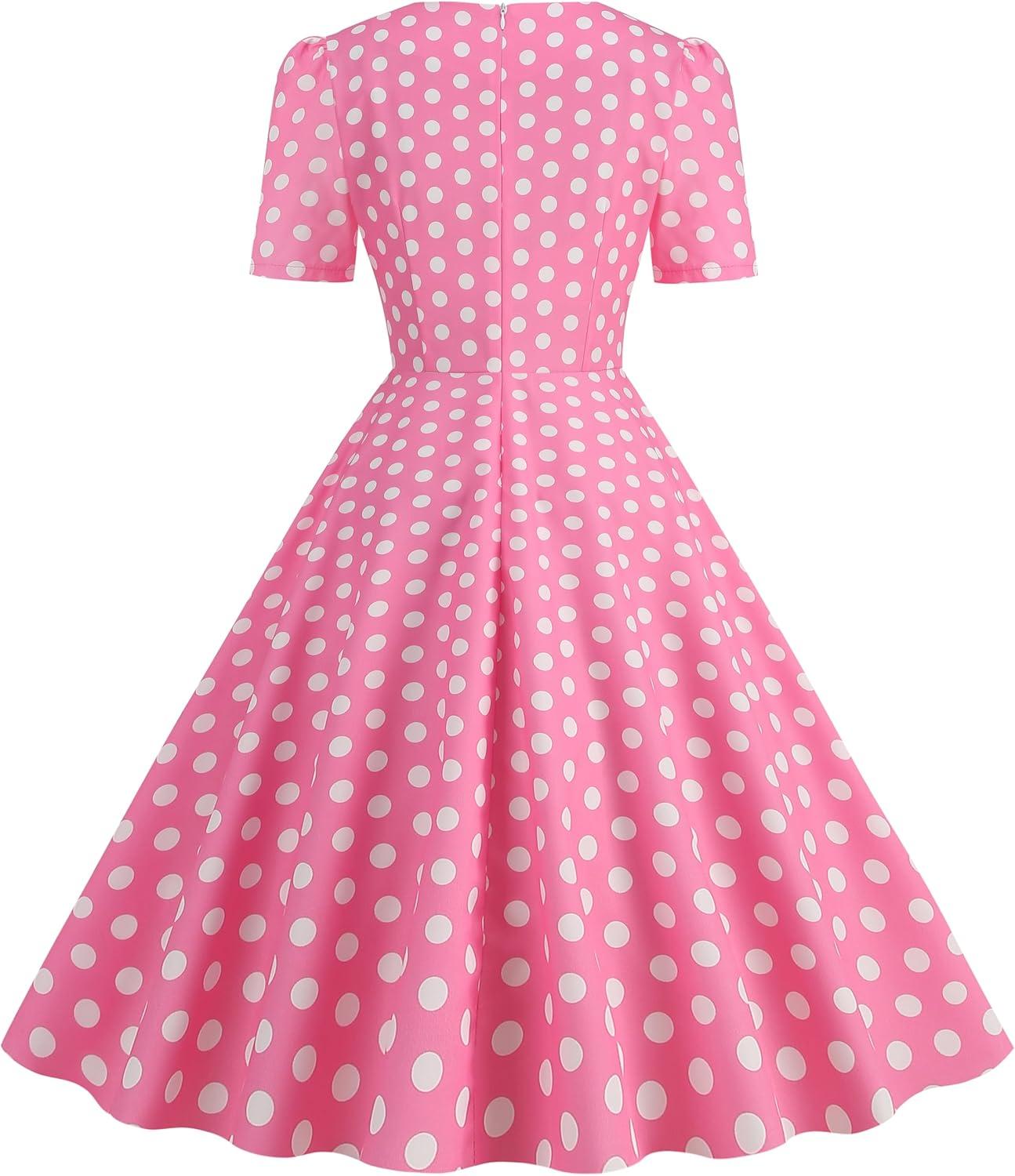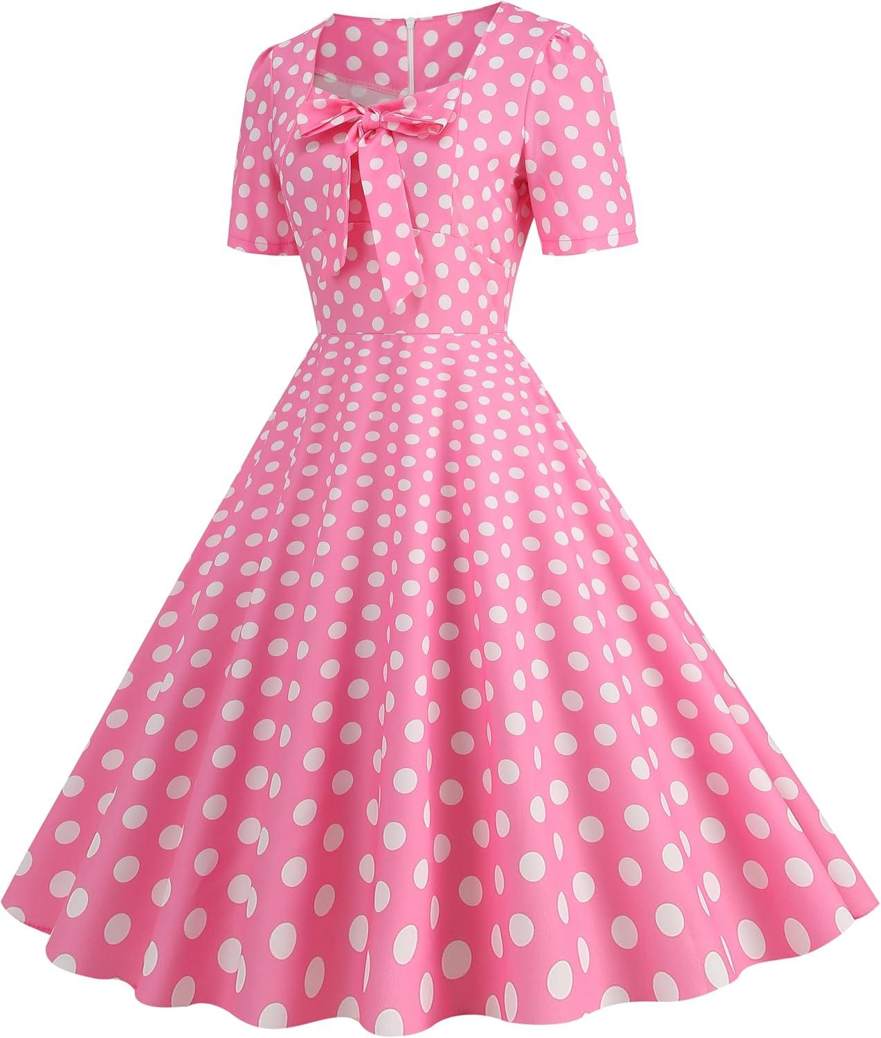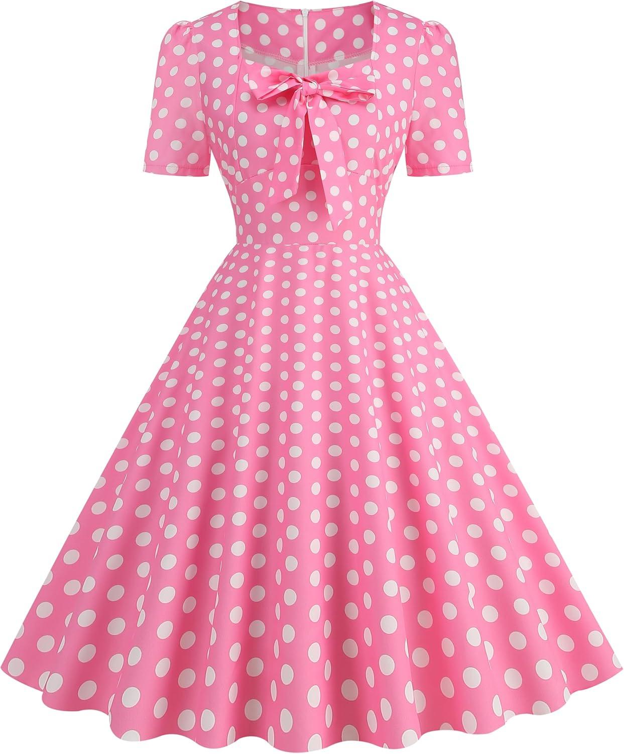 Absolutely. This vintage-inspired dress offers a charming blend of retro elegance and modern comfort, making it a standout choice for any evening party or cocktail event. The knee-length swing silhouette paired with a flattering A-line cut ensures a graceful fit that complements various body types. The classic polka dot pattern and delicate bowknot detail at the square neckline add just the right touch of playful sophistication. Thanks to the short sleeves and hidden back zipper, it’s as practical as it is indeed stylish, making dressing up a smooth and enjoyable experience.