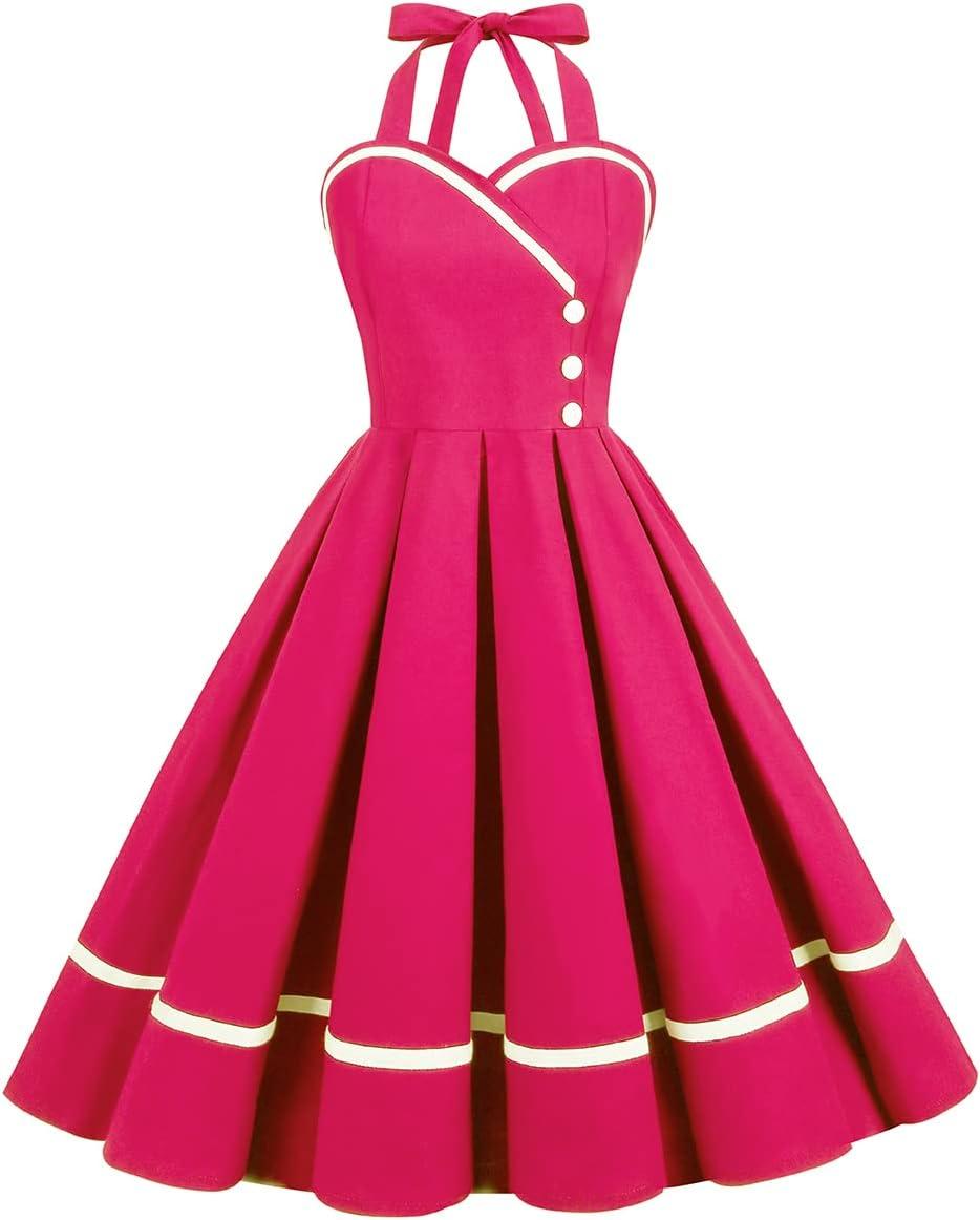 | Authentic vintage 1950s aesthetic with classic halter neckline and full swing skirt | Fit can be inconsistent across sizes,so trying on or checking size charts is essential |