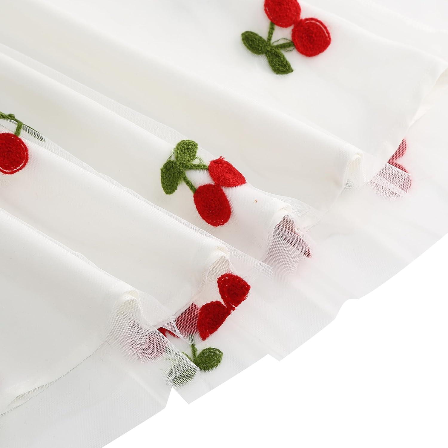 eye-catching red cherry print on‍ soft‍ white‌ tulle adds retro flair Fabric can be‍ delicate-requires careful handling and dry cleaning