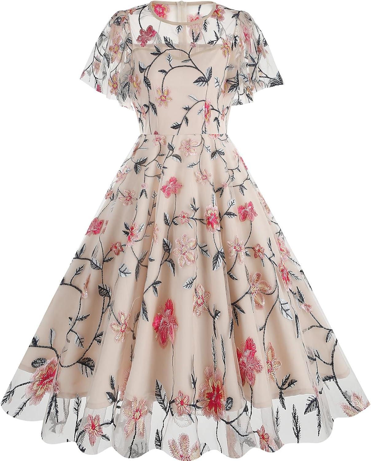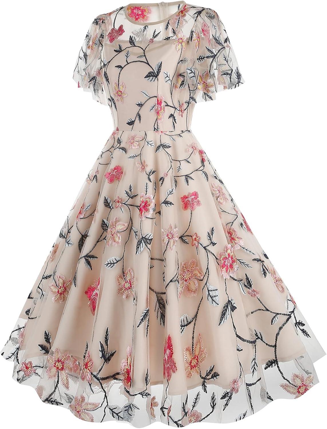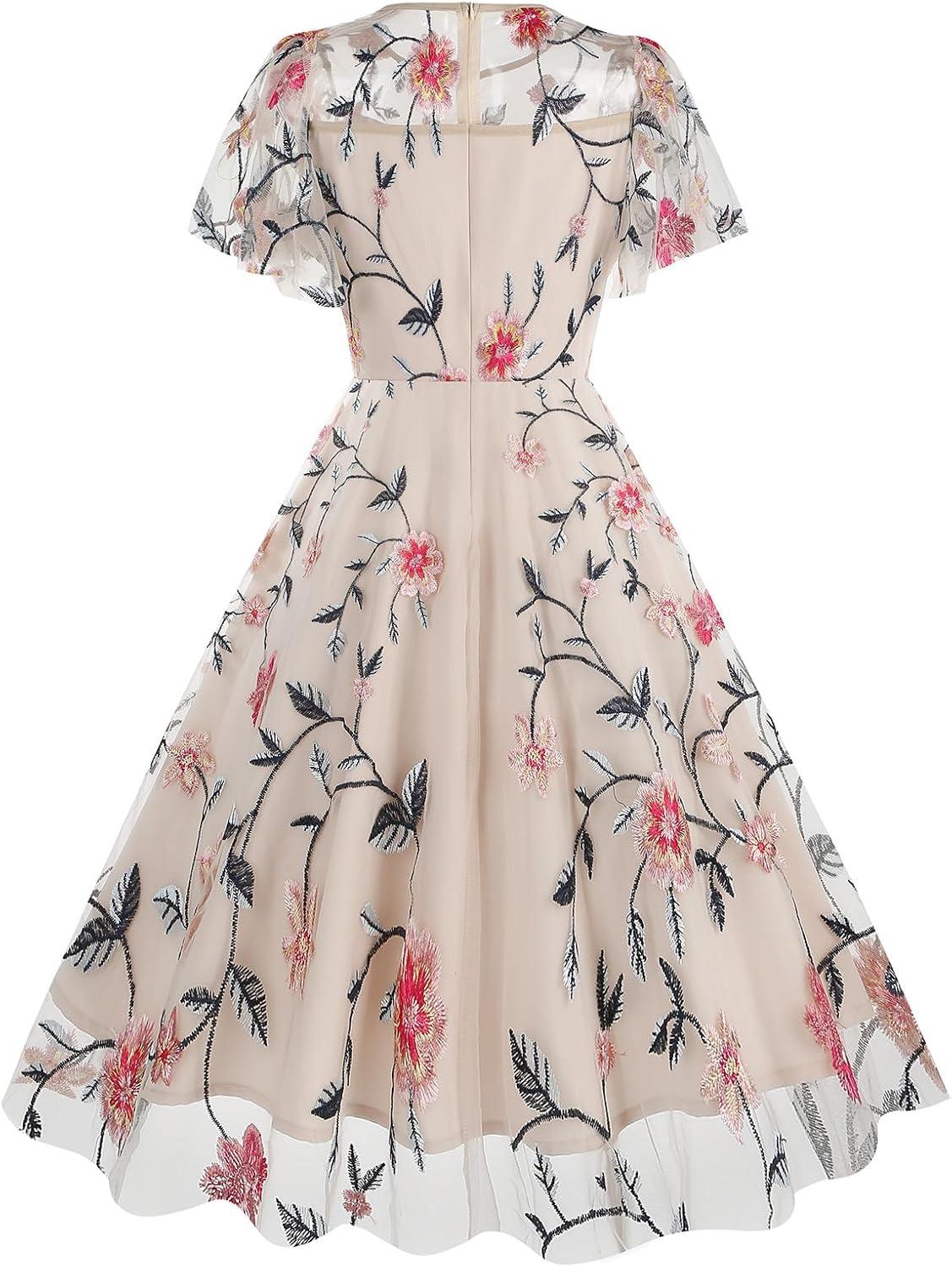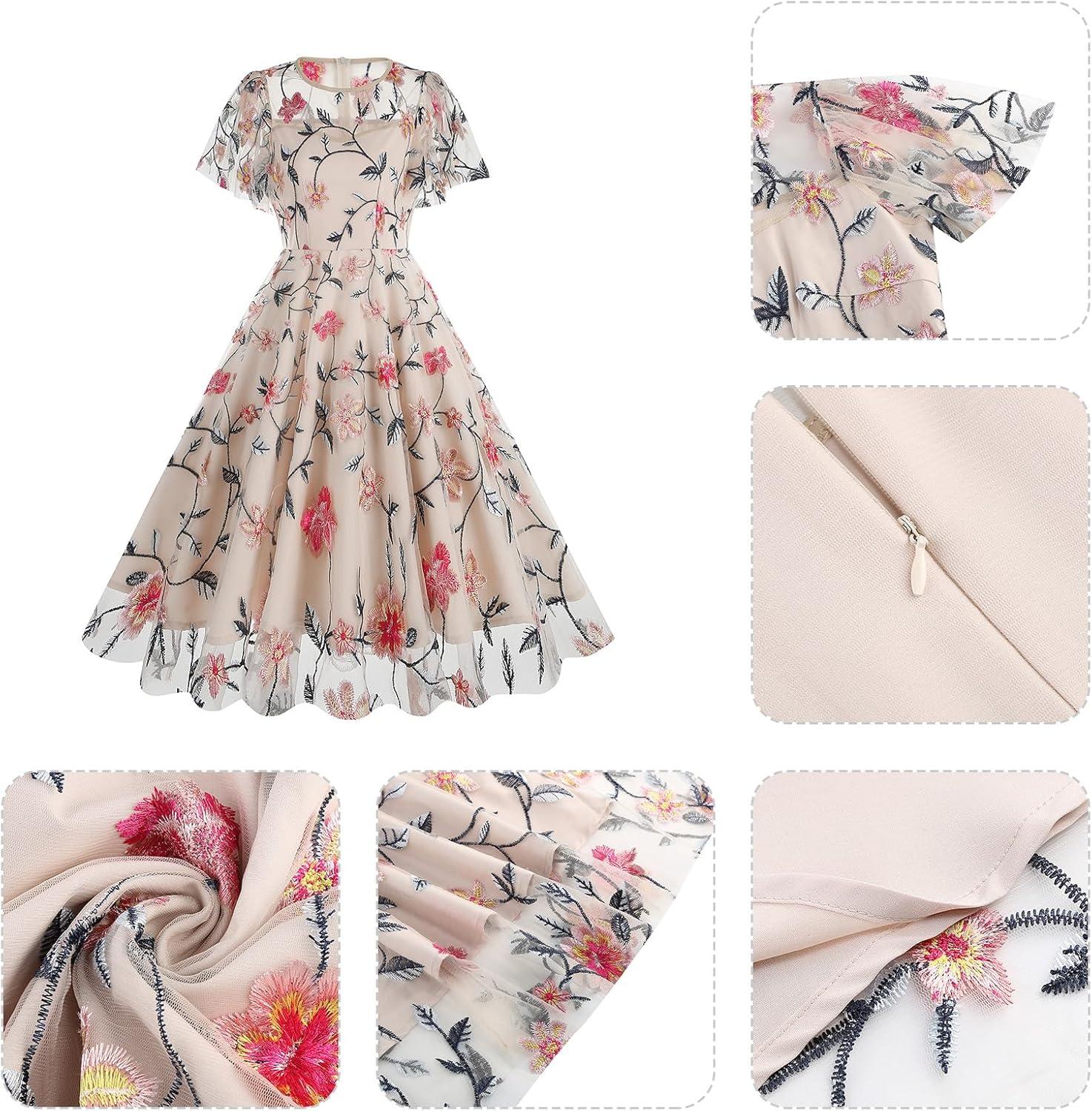 For those who appreciate timeless elegance blended with delicate craftsmanship, this dress stands out as a must-have addition to⁢ any‌ vintage-inspired wardrobe. Its exquisite⁢ floral embroidery on soft, breathable mesh fabric ​captures​ the⁣ essence⁢ of the 1950s glamour while ensuring comfort throughout your special ‍events. The fit-and-flare silhouette⁣ gracefully highlights ‍the ‌waist and offers a flattering shape, perfect‍ for cocktail ⁤parties, weddings, or prom nights.⁢ We also ⁢love the subtle short sleeves ‌that add ‌a touch of sophistication without overpowering the classic​ design.