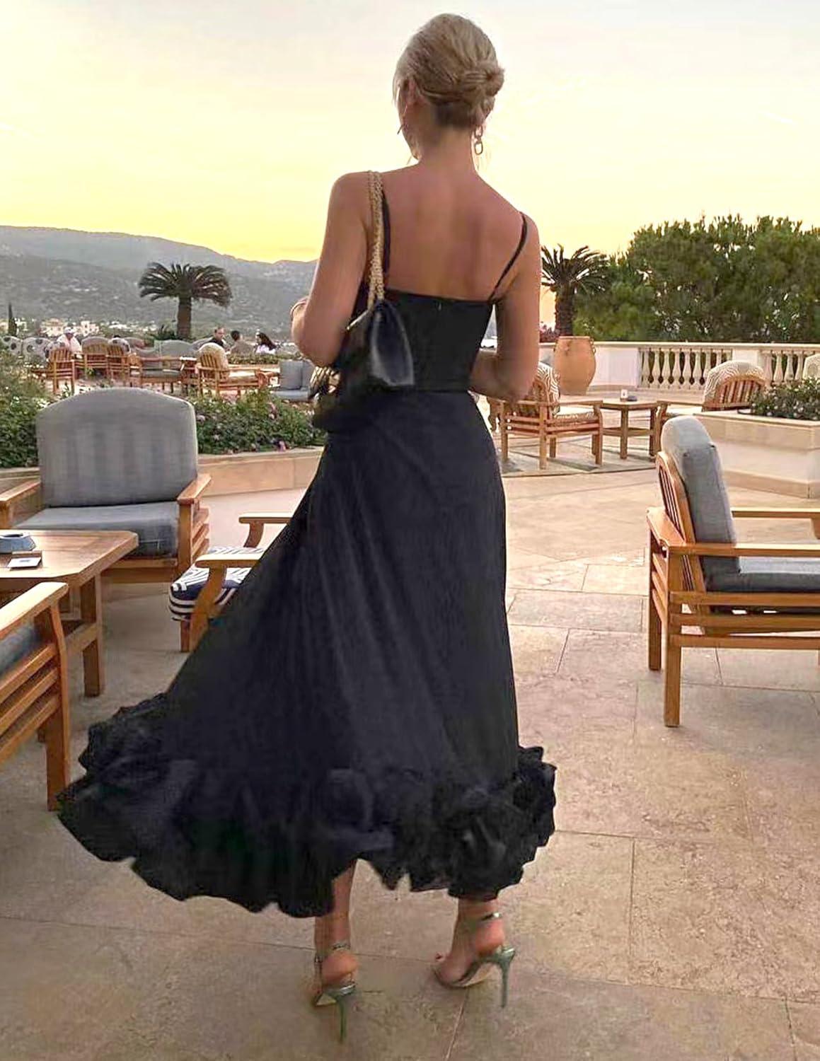 After trying out this delicate and feminine dress, we believe it shines brightest in settings that call for both elegance and a touch of whimsy.Its spaghetti strap design combined with corset-style ruched detailing beautifully contours the silhouette, while the floral mesh and ruffles add a playful yet refined charm. Whether you’re headed to a garden party, a thoughtful birthday celebration, or a laid-back vacation event, it’s made for those who appreciate a balance of comfort and style without sacrificing sophistication.