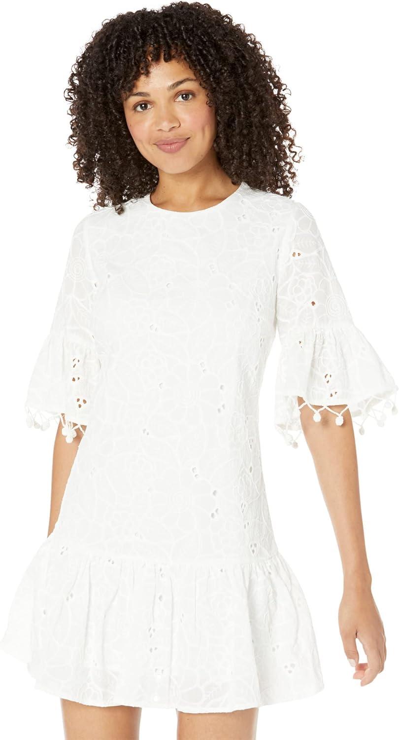 At the heart of this dress’s allure is its 100% cotton composition, lending it an unmatched breathability and comfort. The fabric’s soft texture is accentuated by an allover eyelet construction, which not only enhances its visual appeal but also adds a delicate, intricate touch that’s rarely seen in cocktail attire. This careful choice of material ensures the dress is light enough for an evening out yet structured enough to maintain its flattering silhouette. Plus, the natural fibers offer a refined quality that synthetic blends simply cannot replicate.