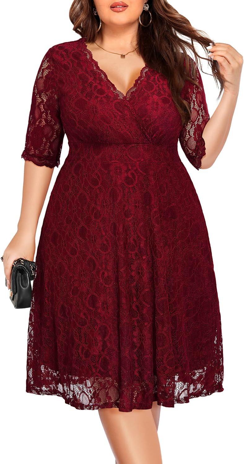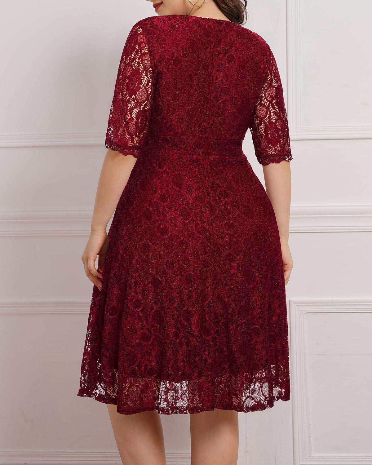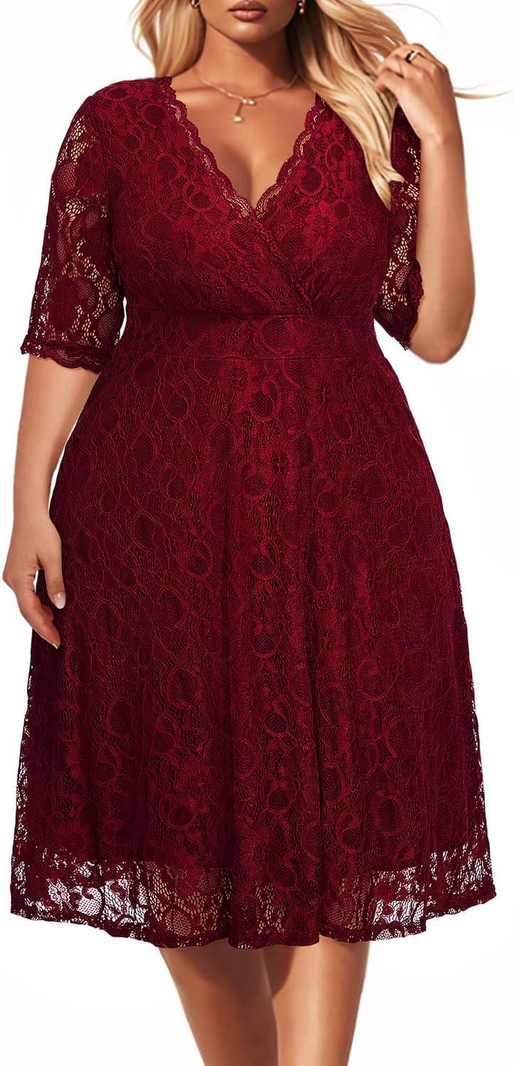ready to make a statement with this beautiful lace dress? Discover more and find your perfect fit by checking it out here: Shop the Women’s Plus size Lace Wrap Cocktail Dress on Amazon.