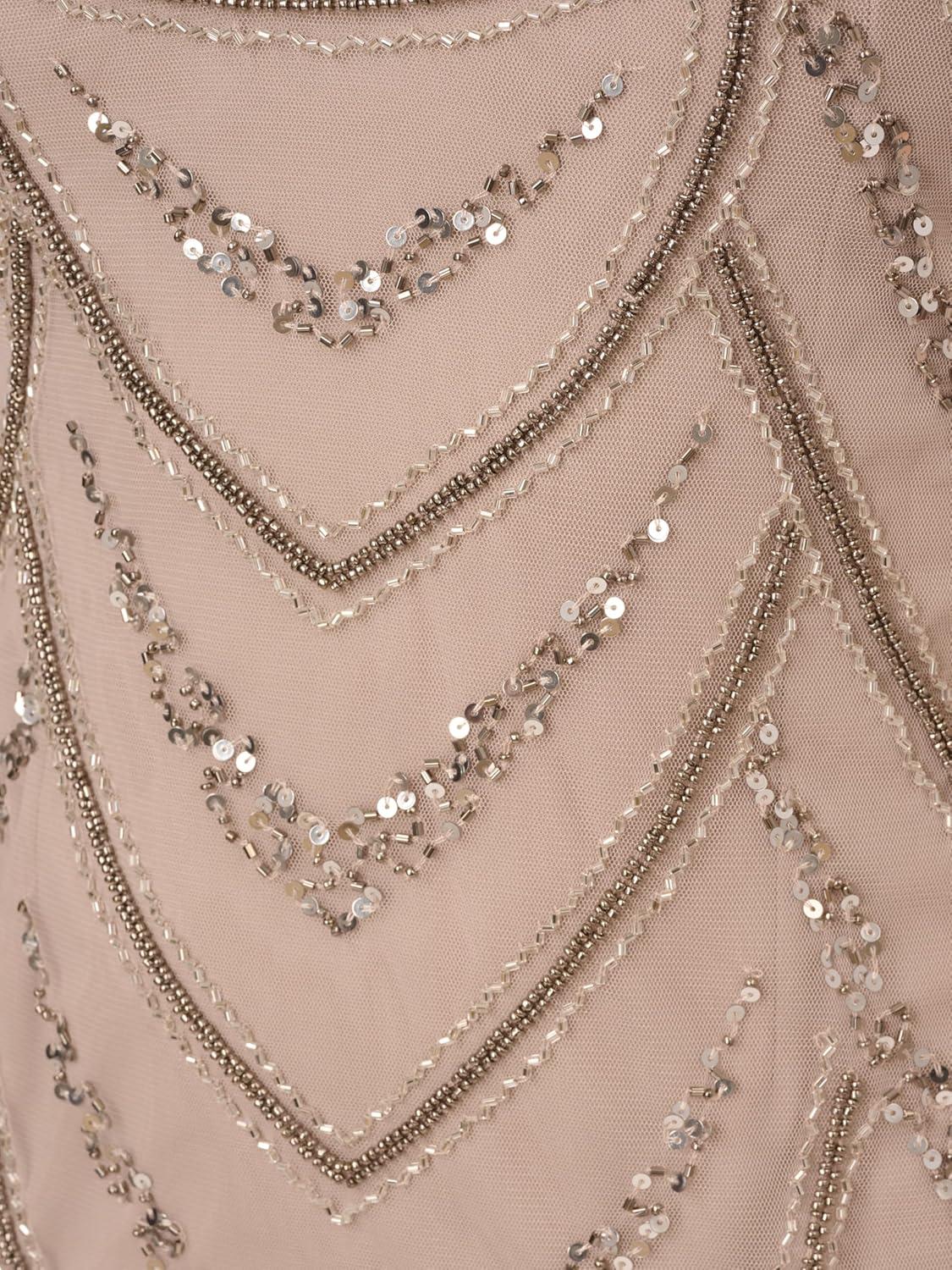 there are certain moments when we want to feel effortlessly elegant, and this dress steps in perfectly for all those special evenings. Its fitted silhouette combined with delicate sheer cap sleeves makes it an ideal choice for cocktail parties, holiday gatherings, or even upscale dinner dates. The intricate deco beading adds just the right amount of sparkle without overwhelming the look, allowing us to stand out gracefully. Plus, the absence of a waist seam ensures a flattering fit no matter the body shape, giving us confidence throughout the night.