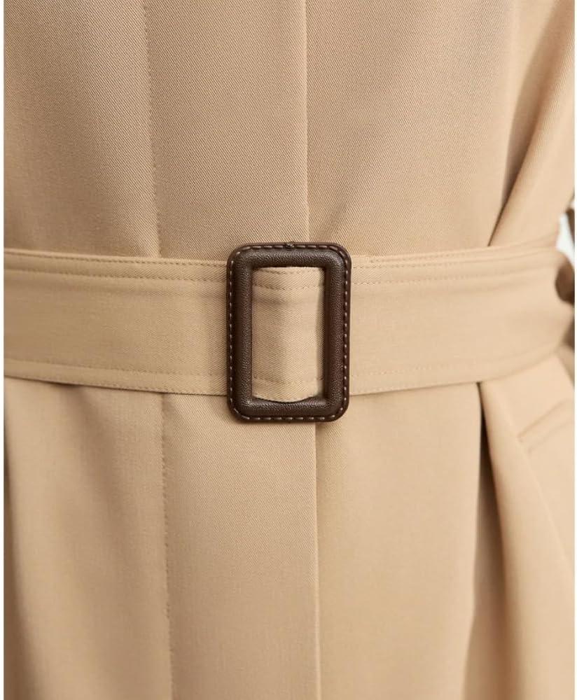Over a day of commuting, meetings, and running errands the coat develops small habits of its own. After sitting for a while the front can feel a touch compressed and the belt presses more noticeably, and getting in and out of a car routinely shifts the fabric so you smooth the back once you stand. In gusts or when you pause, the collar lifts and then drops again; after repeated wear some creases appear where you tend to fold or clamp it, a steady, predictable pattern rather than an abrupt change.
