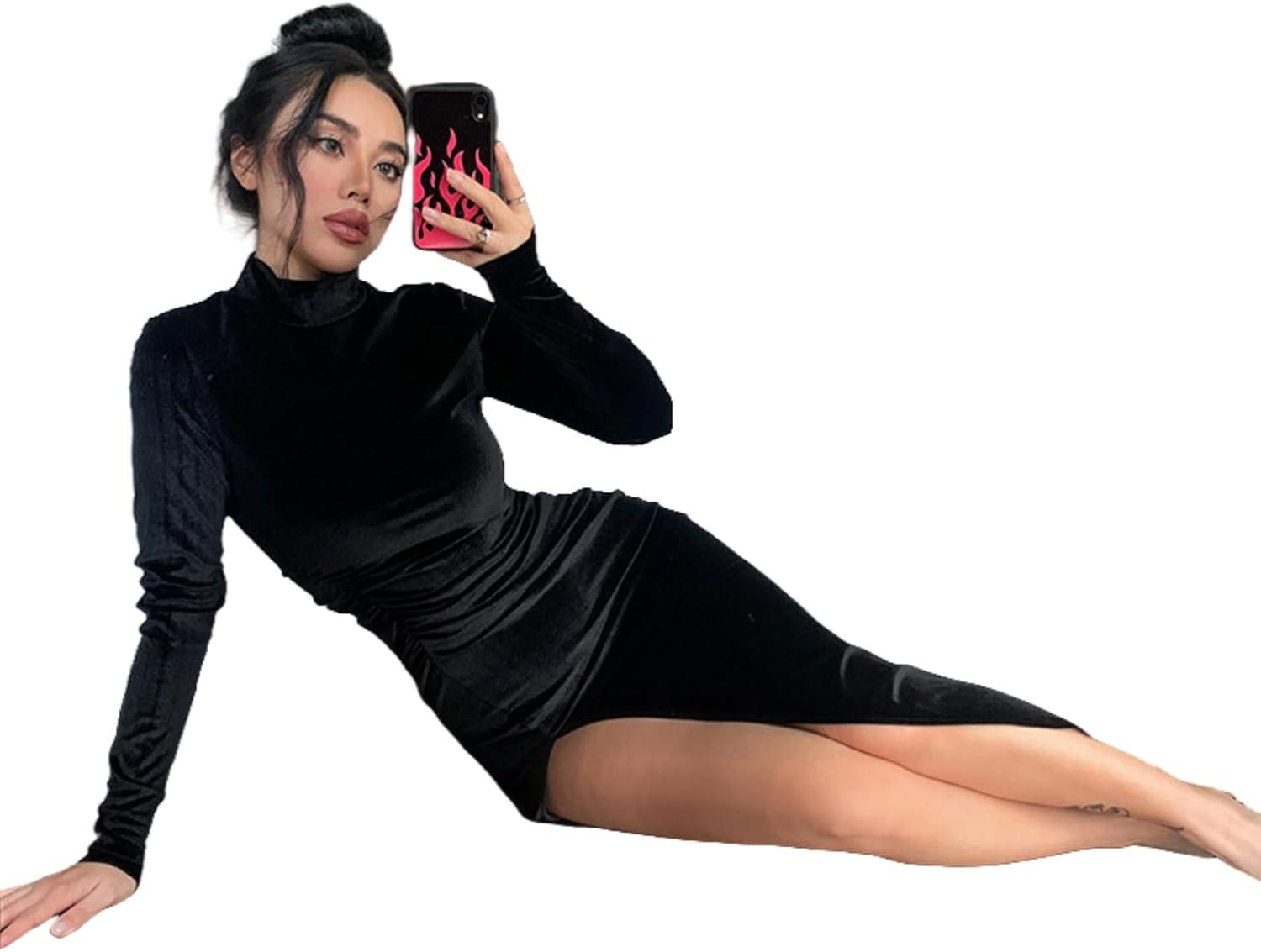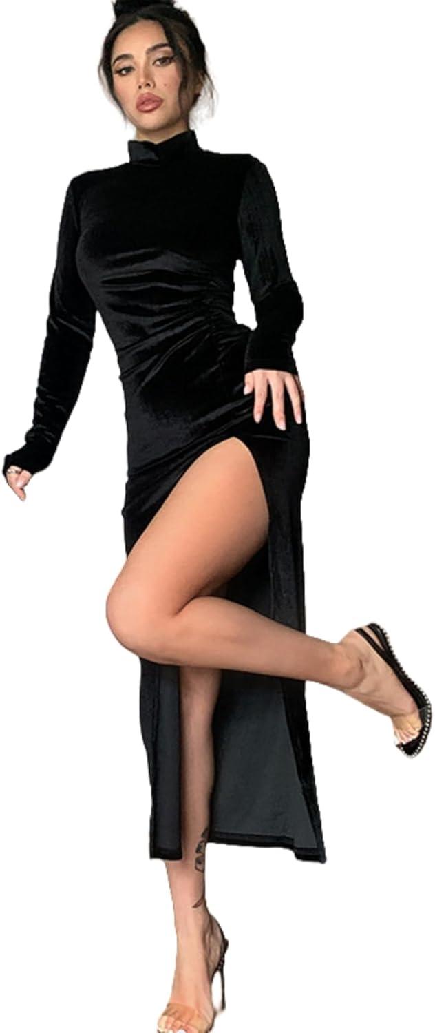 Crafted from a soft velvet fabric that perfectly embraces the autumn and winter seasons,⁣ this dress strikes a balance between elegance ⁢and allure. The long sleeves⁢ and mock neck offer a refined silhouette, while the ruched detailing skillfully sculpts the body for a flattering⁣ fit.what instantly caught ⁣our ‍attention was the daring side high slit, ‌adding‍ a subtly sexy touch without compromising sophistication. Available⁣ in classic Black and rich Green, the solid ⁣colors make it an easy‍ choice for a variety of occasions, from cocktail parties to holiday gatherings.