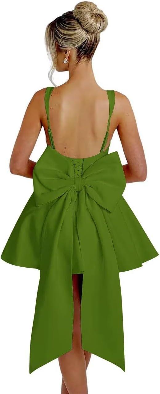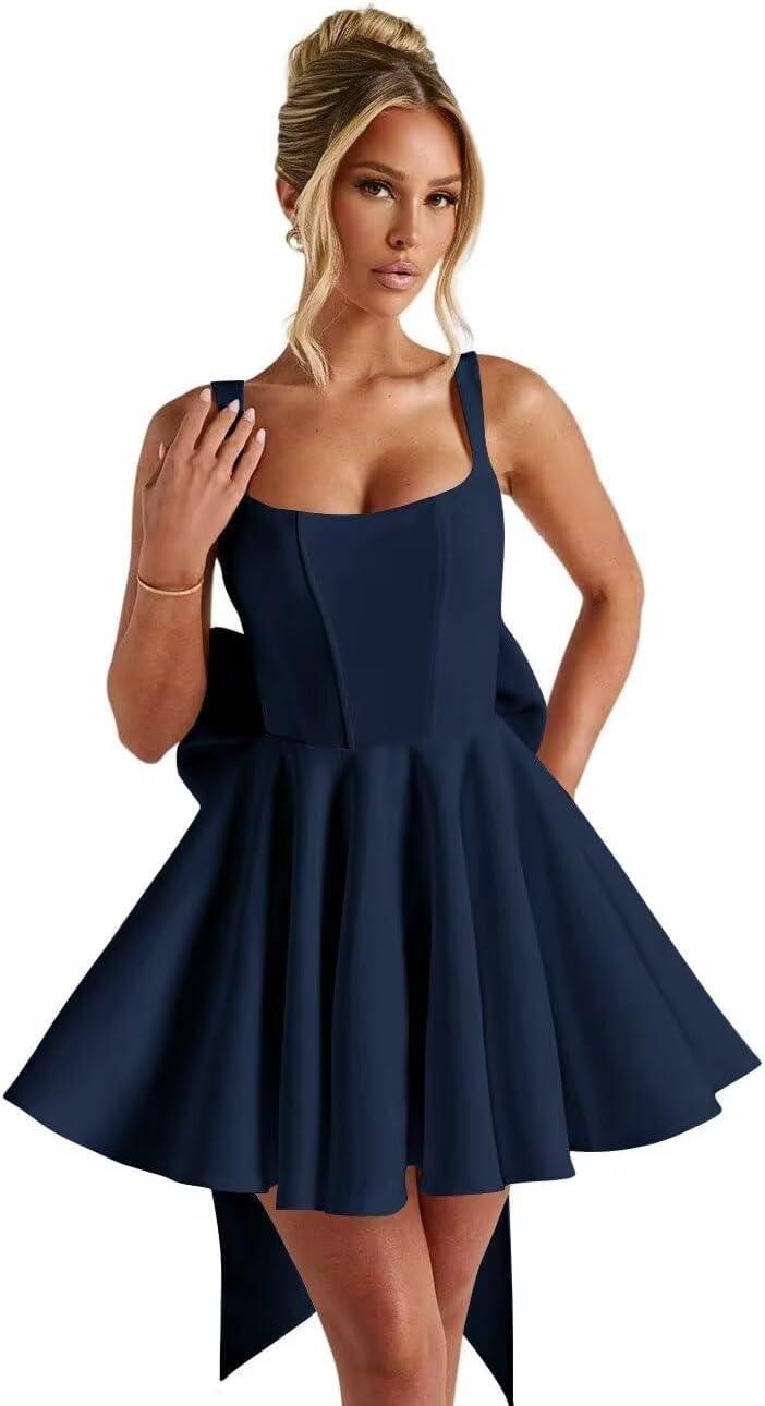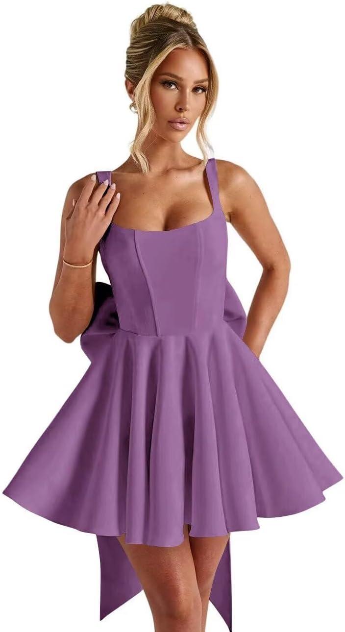 The SWisteria Spaghetti Straps Homecoming Dress with Bow-Knot Satin Square Neck starts out with a certain crispness, then over time eases into quieter company in the closet. In daily wear the fabric softens, seams relax, and the bow sits a little lower as the satin shows the soft fade of ordinary laundering. As it’s worn in regular routines, the comfort behavior — how it slips on, the slight give around the bust and shoulders — becomes part of the getting-dressed rhythm rather than a thing to notice.After a few wears and washes, it simply settles.