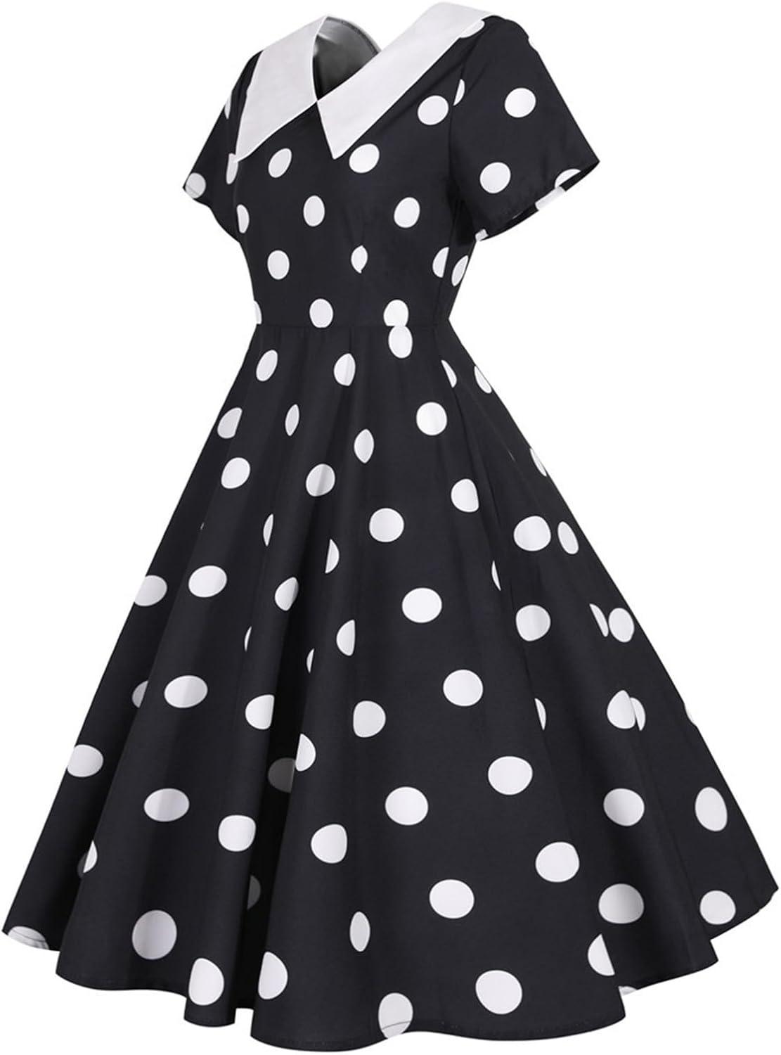 This dress perfectly captures the classic charm of the 1950s with its playful polka dot pattern and flattering A-line silhouette. Featuring a delicate Peter Pan collar and short sleeves, it offers a nostalgic yet sophisticated vibe ideal for cocktail parties, evening gatherings, or special occasions like weddings and graduations. Crafted from a comfortable blend of polyester and spandex, it ensures ease of movement while maintaining a polished look that never goes out of style.