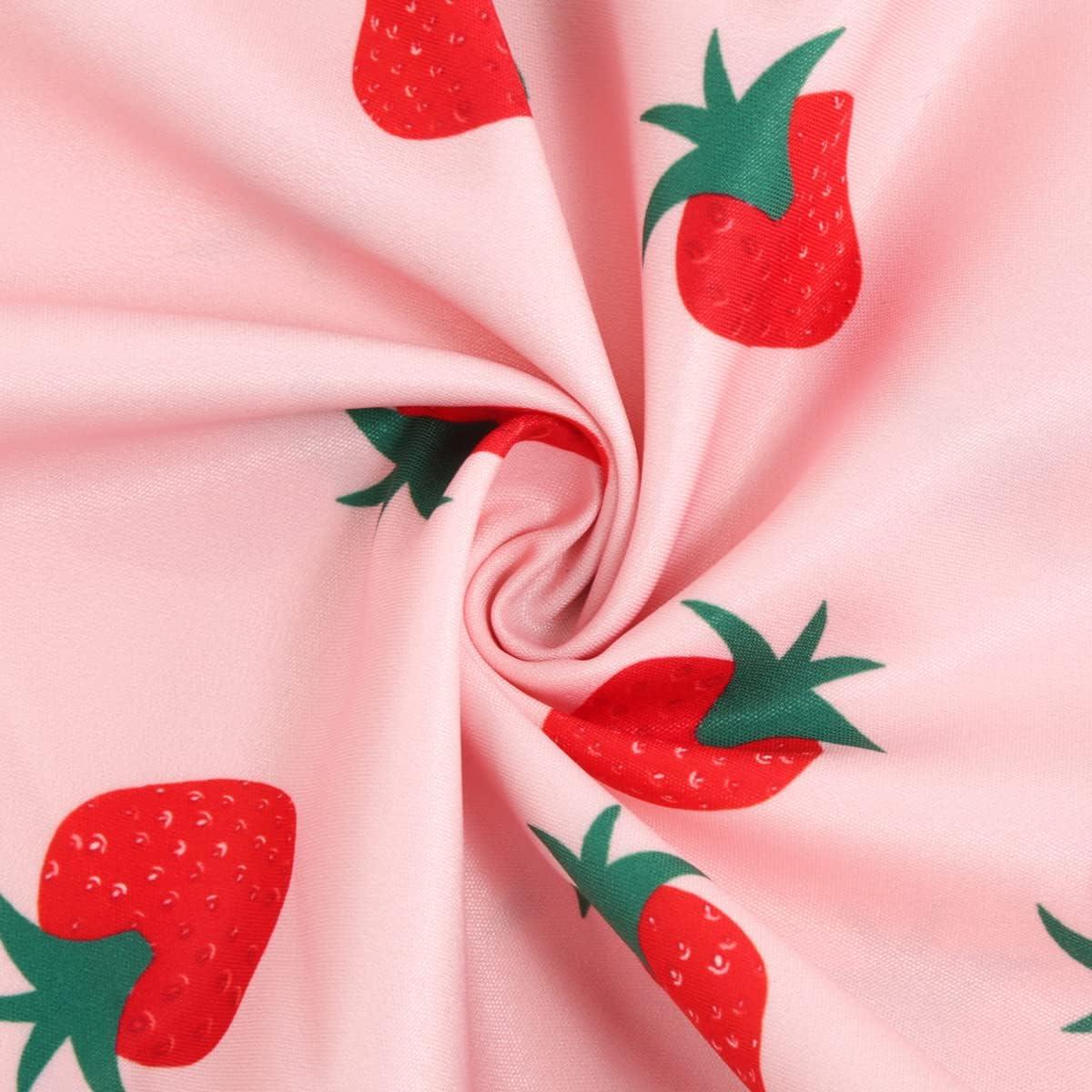 Color Soft‌ pink with charming strawberry⁣ print adds vintage flair