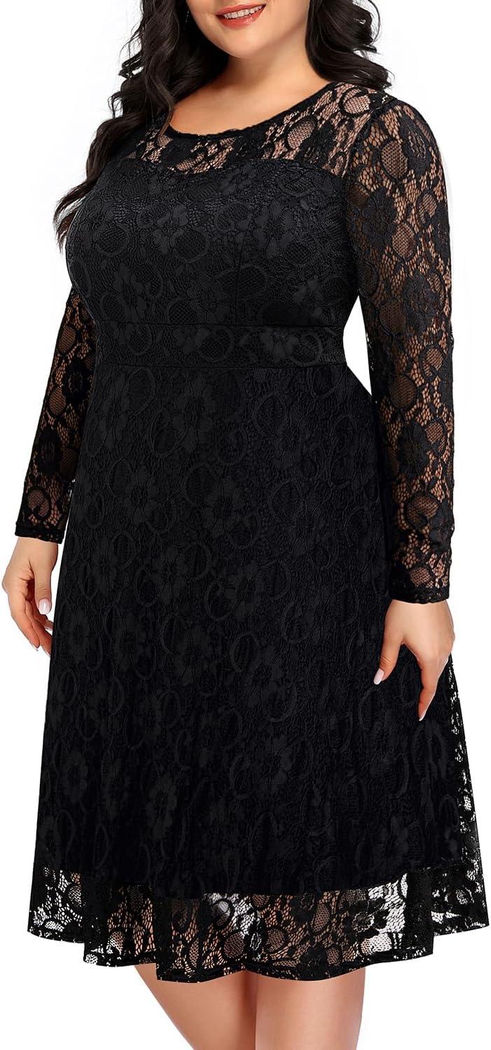 After trying and evaluating the plus Size cocktail Dresses Women Black Lace Wedding Guest Party evening Funeral Semi Formal Midi Swing Crew Neck Dress, here are our thoughts to help you decide if this timeless lace dress is the right fit for your elegant occasions.