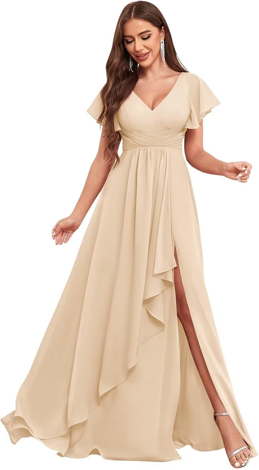 When you strip it down to basics,Amazon’s chiffon Bridesmaid Dresses for Women Long Ruffle Sleeve Wedding Guest Dress Champagne Size 8 is a quietly elegant option that does what a bridesmaid or wedding guest dress should: it drapes, breathes, and stays out of the spotlight while still looking polished. It effectively works best for you if you prefer a long, flowing silhouette that offers modest coverage (the ruffle sleeves help) and a lightweight, comfortable feel that holds up through ceremonies and receptions. It’s not designed for everyday casual wear—save it for when you need something a bit more formal. If you want to inspect details or double-check sizing, take a look here: View this dress on Amazon.