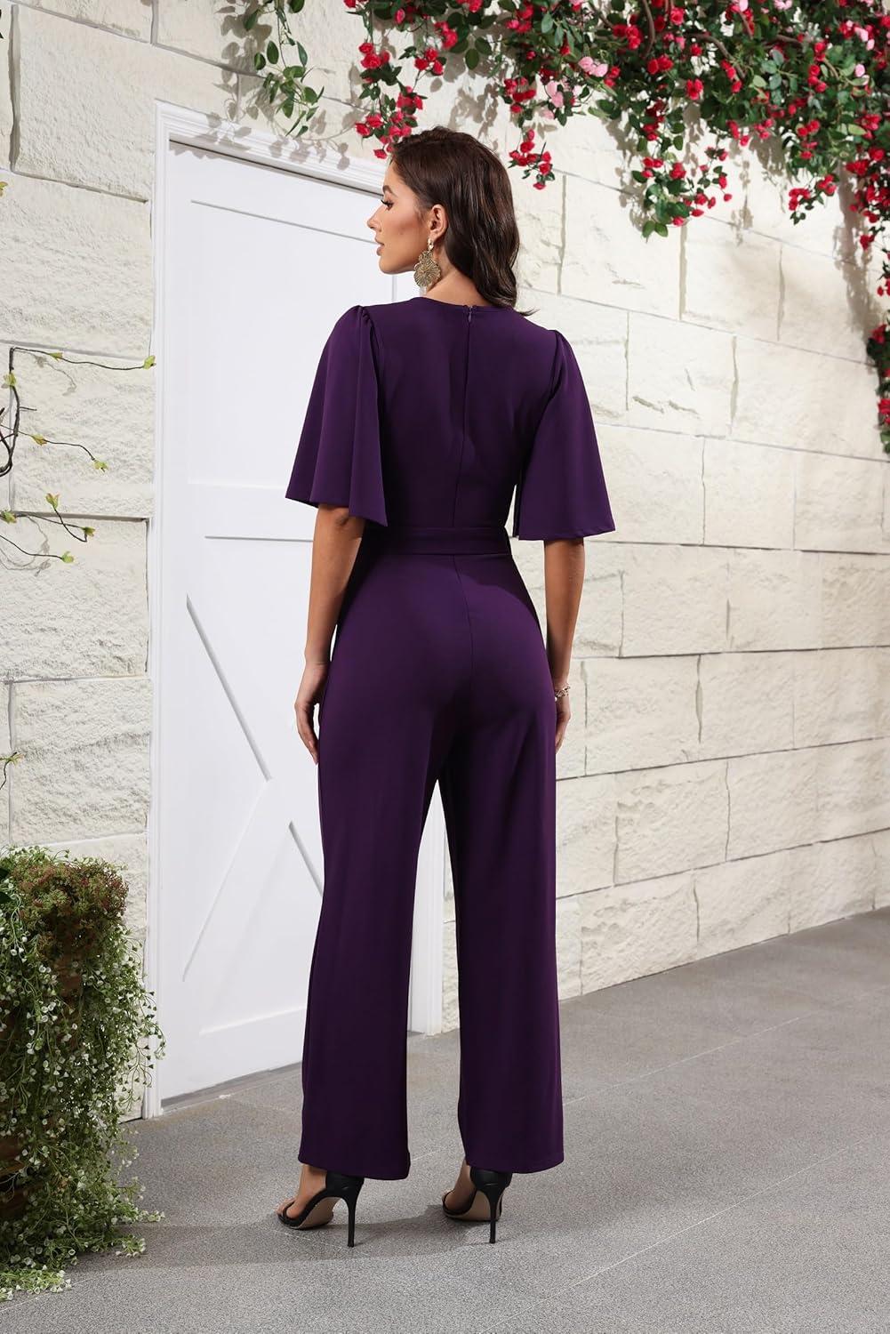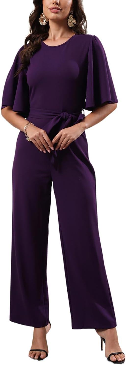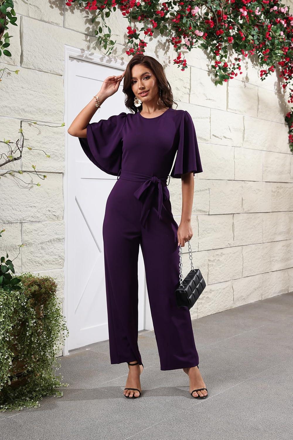 We judge quality first by how a piece hangs and moves, and the combination of a defined high waist, a cinching belt and the flowing wide leg tells us this was cut for graceful drape rather than stiffness. The short ruffle sleeves and the crew/mock neck treatment point to thoughtful styling details that elevate a casual one‑piece into something dressy‑enough for evening plans. when we examine the silhouette, the solid‑color palette and clean lines give the impression of careful patterning and a finish aimed at versatility across occasions.