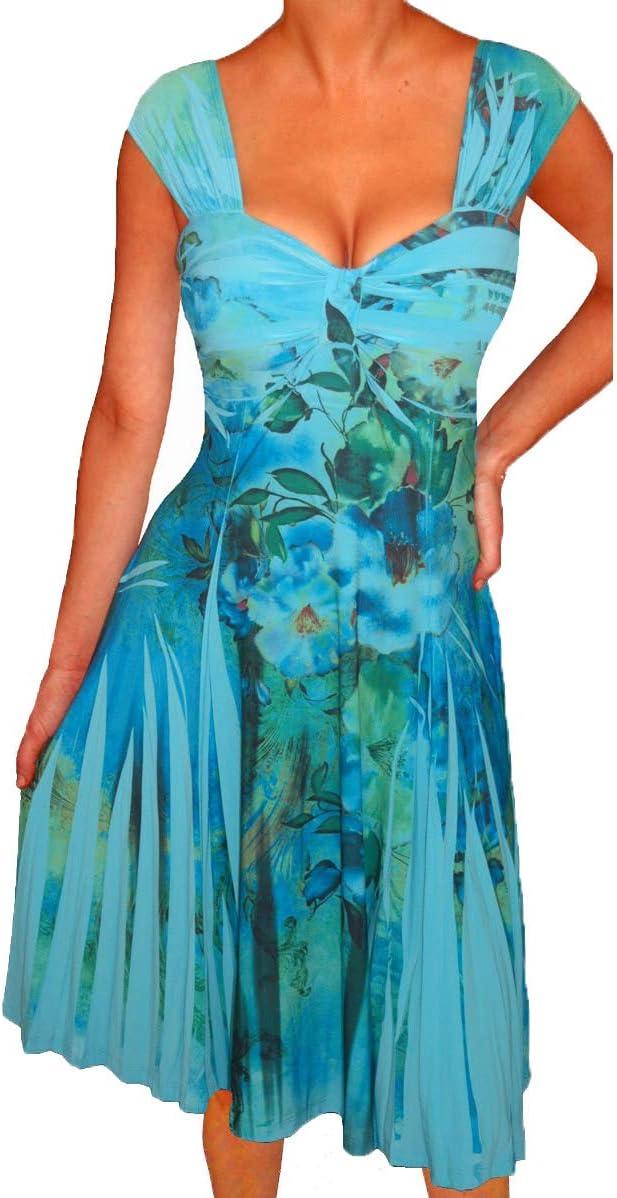 On first handling,we were struck by the way the empire waist sculpts without clinging — the fitted bodice falls softly under the bust and creates a flattering drape that feels both effortless and intentionally feminine. The ruched bustline and cap-sleeve detail add shape and structure, while the medium-stretch fabric feels silky and breathable against the skin. The blue floral print reads lively yet refined, and we found it easy to style with a variety of footwear; in short, the dress balances a playful print with a polished silhouette. We also appreciated that the piece is made with attention to domestic production standards, aiming to support U.S.-based garment partners and more mindful factories.