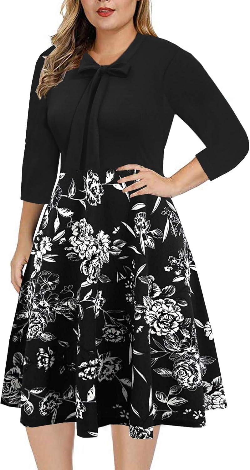 We recently spent several days ⁣wearing the BEDOAR Women’s Plus Size Dress — ‍and after swapping it between the office, a weekend brunch, and a short evening outing, we have a ⁣clear sense ​of what it offers. ​On first glance the vintage bow-tie neck⁢ and 3/4⁣ sleeves give the dress an old-school, polished silhouette; up close, the⁢ A-line ​cut and knee-length hemline show why it’s aimed at curvy figures. It feels like a classic wardrobe piece with practical details stitched in.