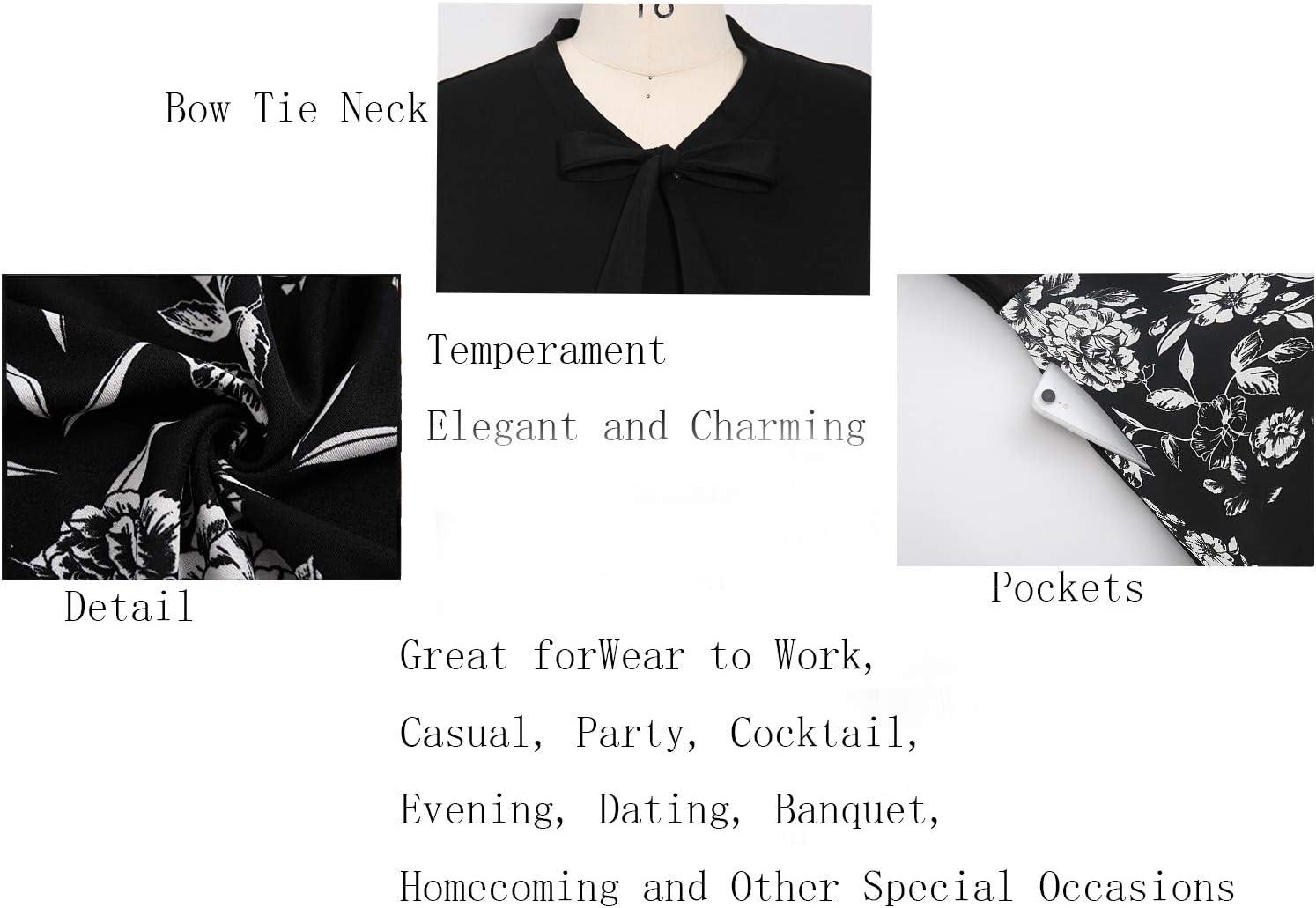 The practical design elements keep the retro charm wearable: the 3/4 sleeves and stretchy fabric give a graceful drape, and the hidden ⁤side zipper plus ⁢ hidden ‍pockets ⁢on both sides add modern convenience. We find it versatile across settings—office,⁣ dinner, church, ​or garden parties—because the bow tie feels dressy yet easy to style with a blazer‌ or cardigan. Below we’ve summarized how that neckline⁣ and the cut work⁣ together: