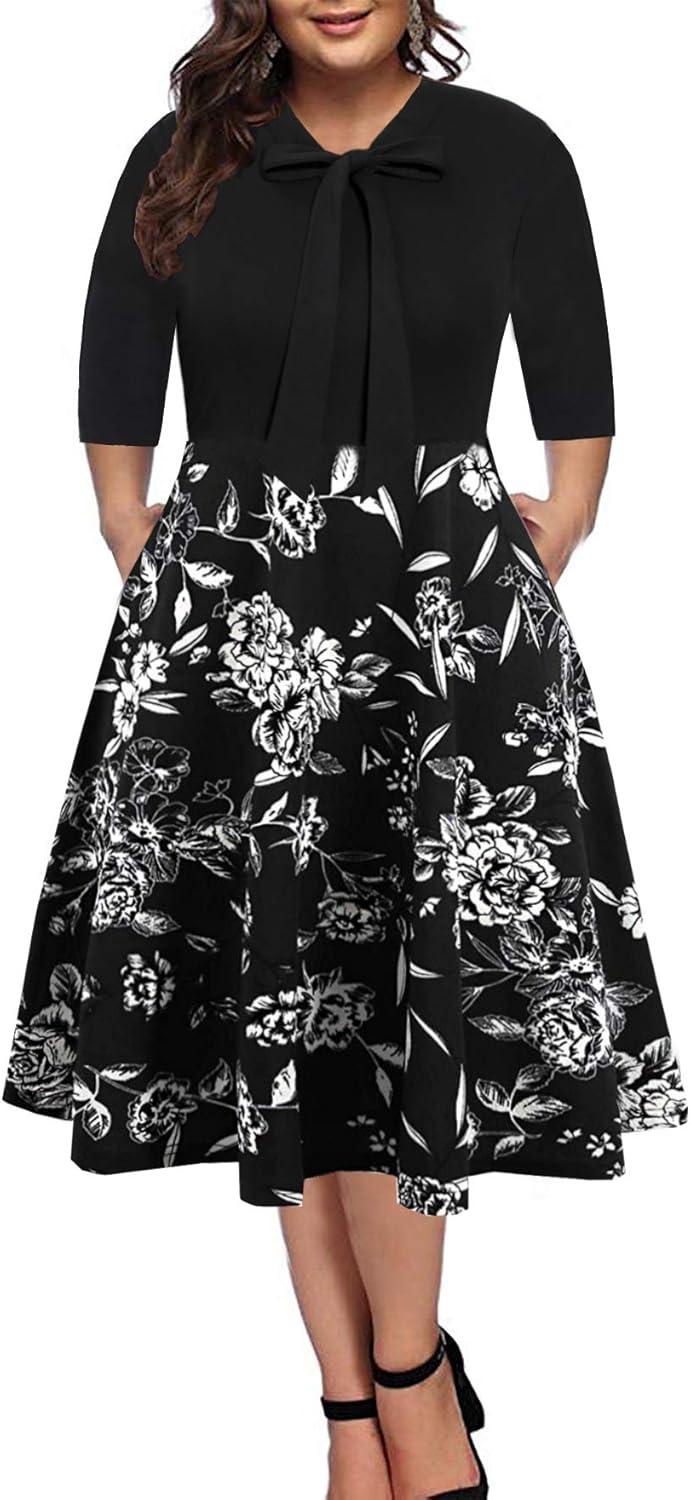 Styling this dress was straightforward. The bow tie elevates a simple silhouette enough for cocktail nights⁢ or a⁣ conference, while the fit-and-flare A-line ⁣keeps it ​office-appropriate and ‌cozy for long wear. In the sections that follow we’ll dig into sizing, fabric feel, pocket functionality, and‍ how it wears after a few cycles in the wash so you can decide whether this vintage-inspired plus-size option belongs in your rotation.