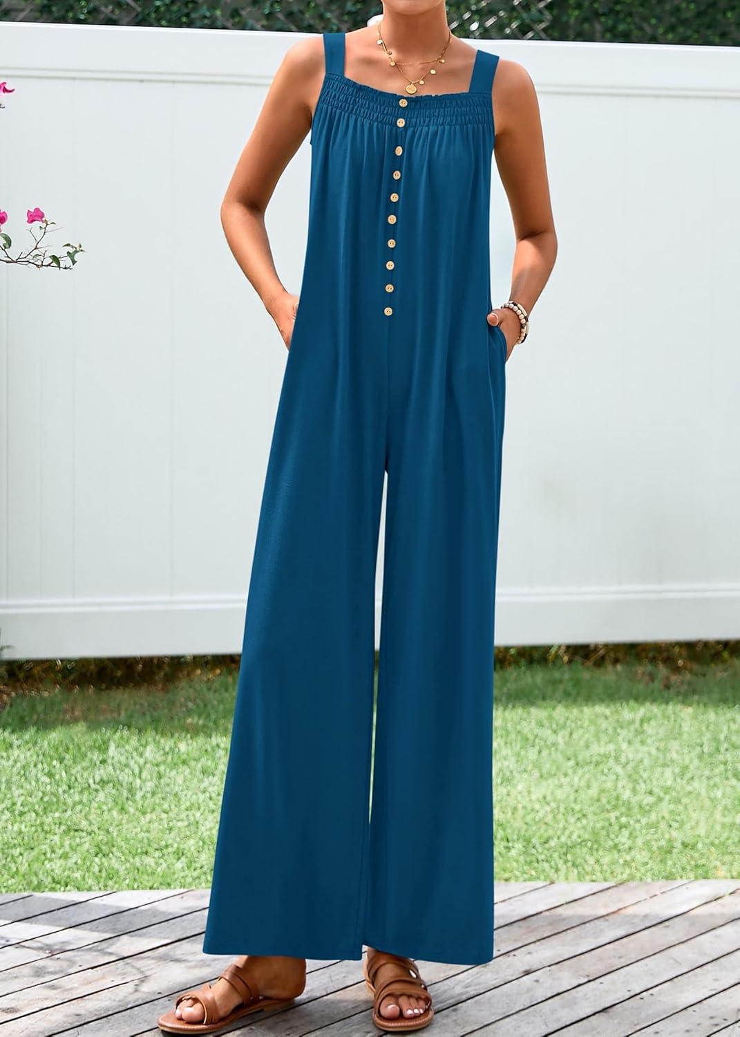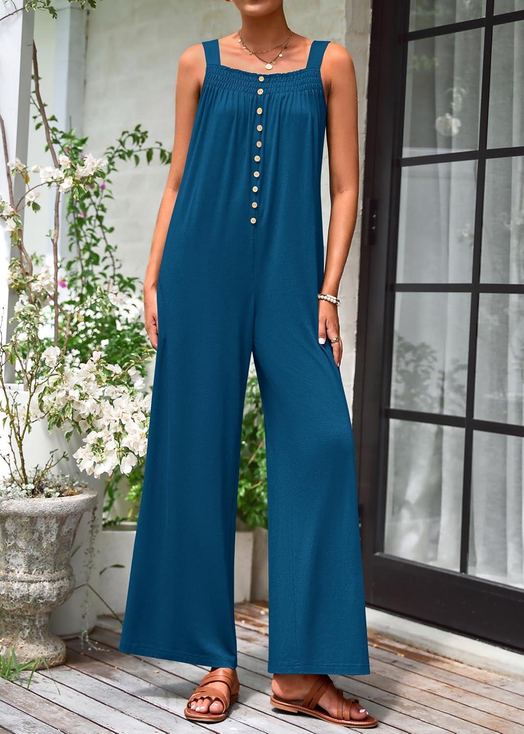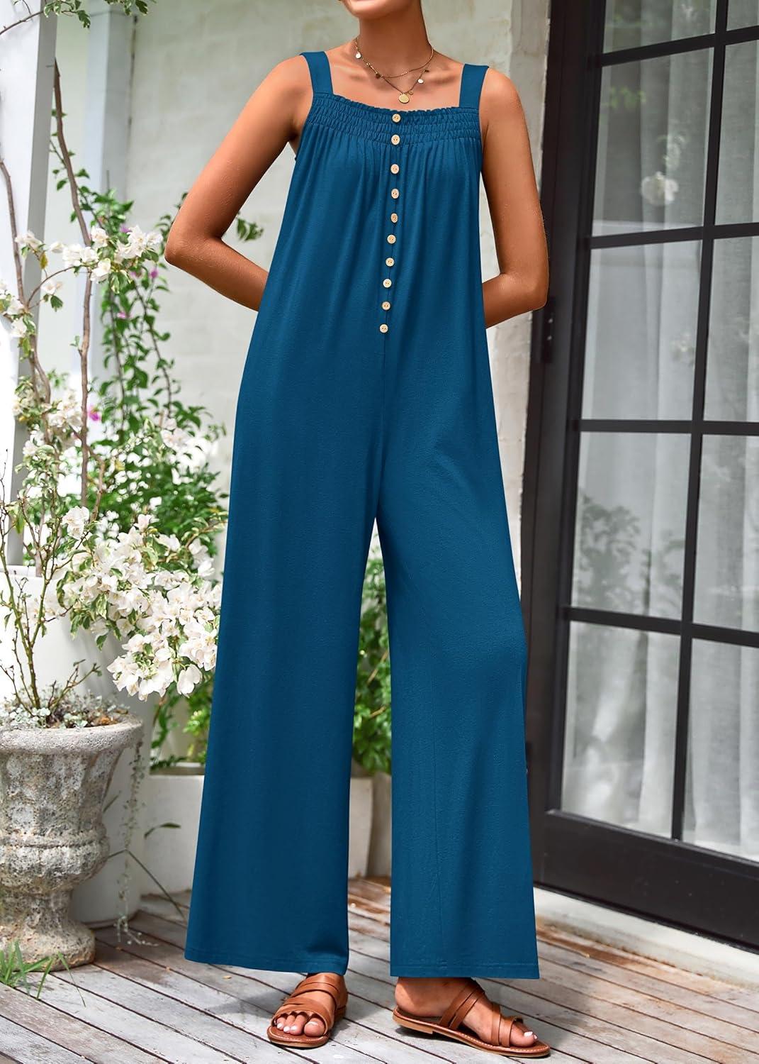 We found this summer one-piece to be a reliable, travel-amiable piece that balances casual comfort with a bit of shape. The knit fabric and sleeveless cut keep it breathable for warm days, while the square neckline and button-front add subtle structure. There’s a roomy cut through the hips and wide leg silhouette that reads relaxed and beach-ready, and the practical pockets are deep enough for essentials. Small design touches — like smocked or elasticized sections at the waist in some variants — make the fit forgiving without looking shapeless. The product launch (first available Feb 15, 2025) is supported by helpful merchant videos that show the jumpsuit being unpacked, compared with alternatives, and worn in real situations, which gave us confidence before trying it. Customer sentiment averages 4.1/5 from a sizeable sample of buyers, which aligns with our overall impression: approachable, pleasant, and versatile.