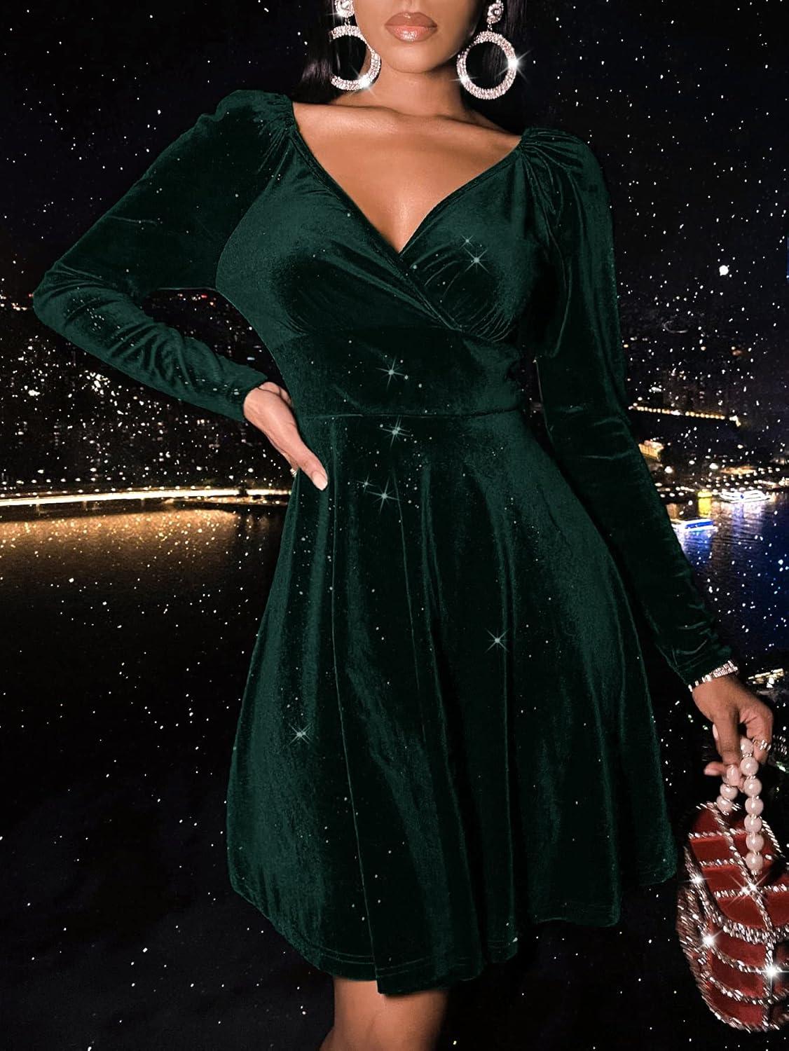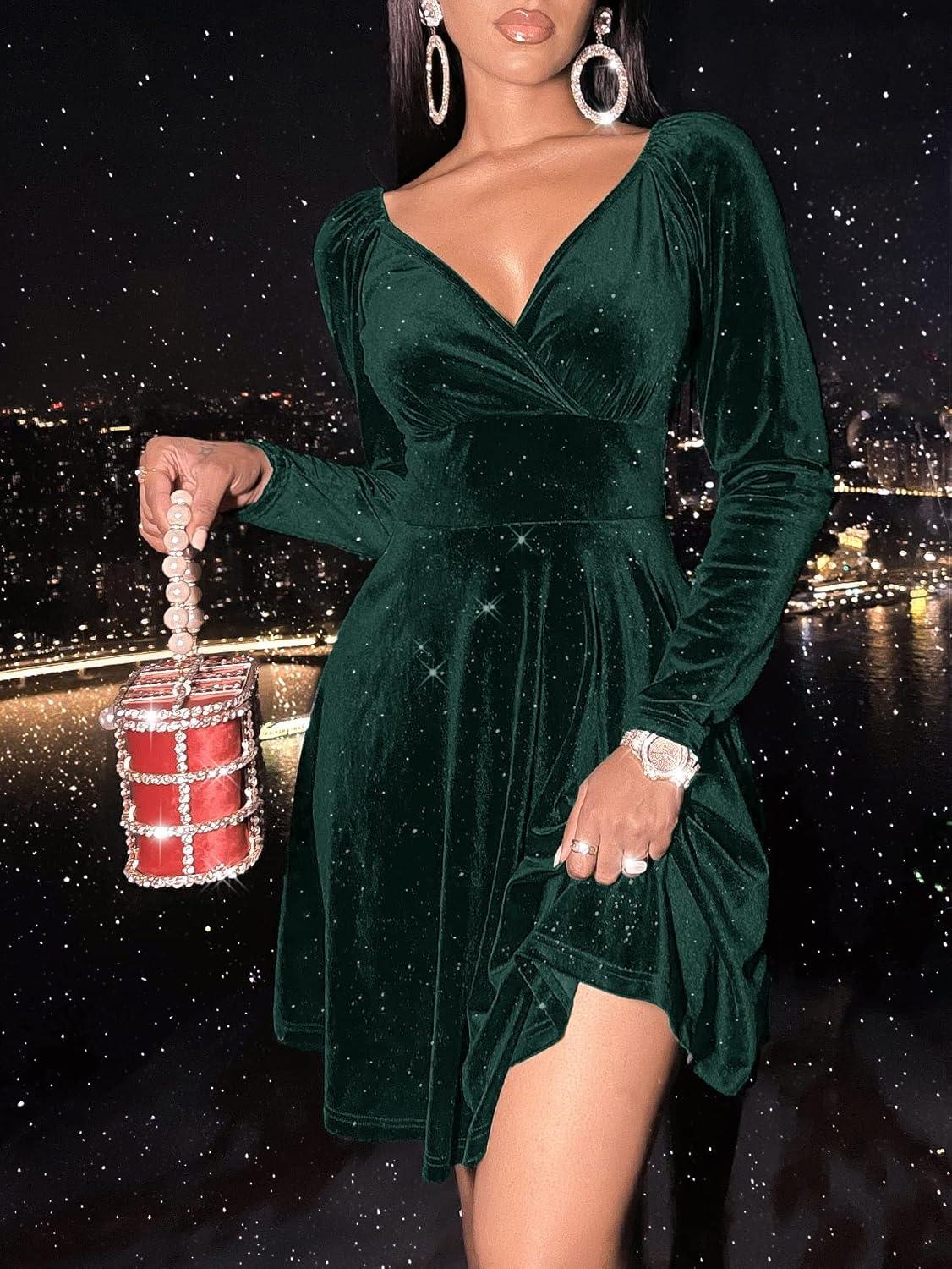 We put the sexyasasii Womens Wrap V Neck Long Sleeve Velvet glitter A Line Cocktail Party Swing Fit and Flare skater Mini Dress through its paces so you know what to expect: velvety warmth, a generous dusting of sparkle, a flattering wrap V‑neck and empire waist that gives the dress a playful swish every time we moved. It reads like a holiday-night staple — cozy enough for winter evenings,eye‑catching enough for a dance floor — and in our wear tests it felt comfortable while still feeling dressed up.