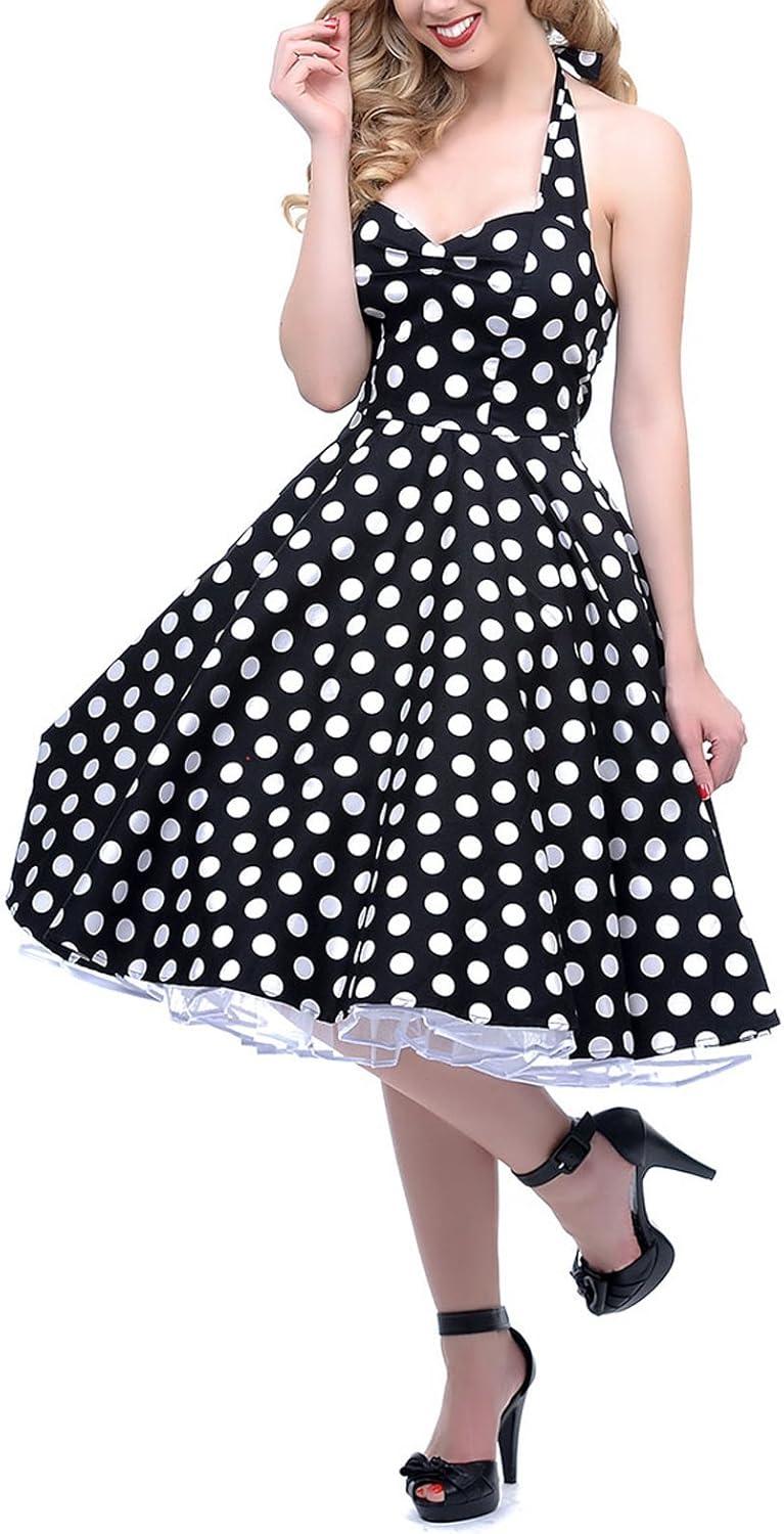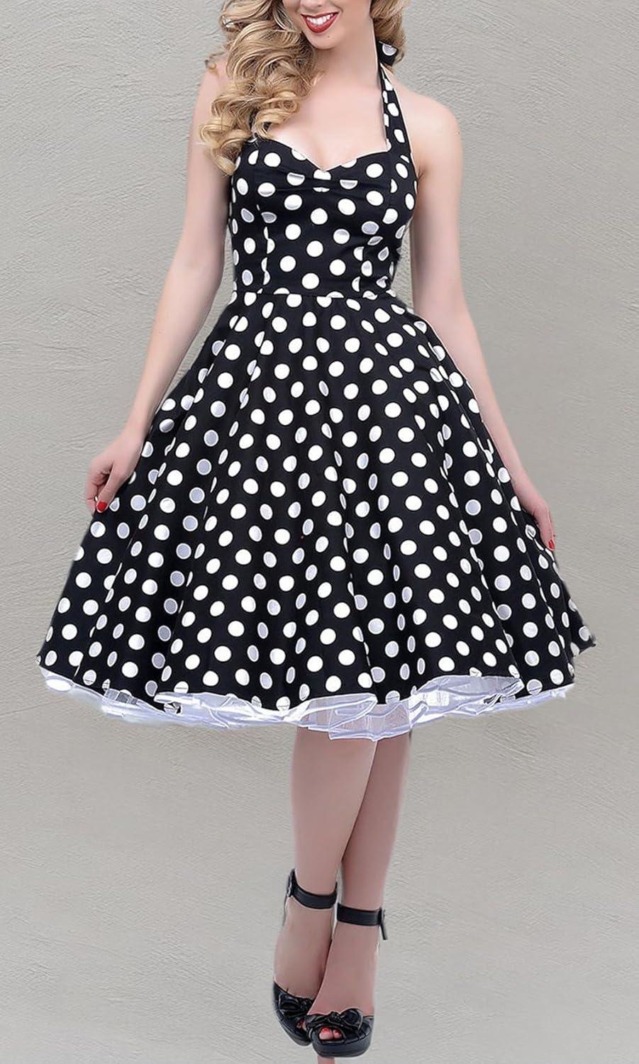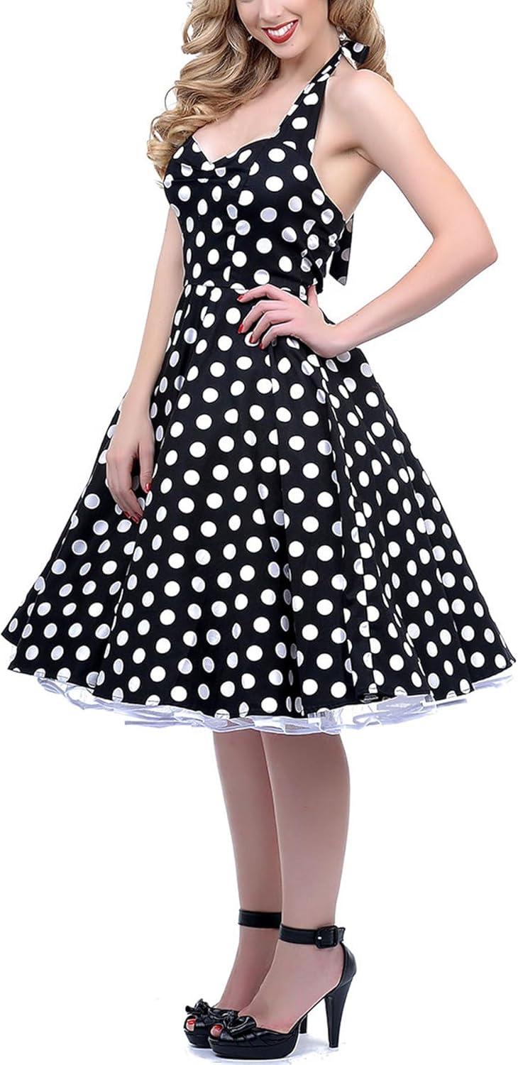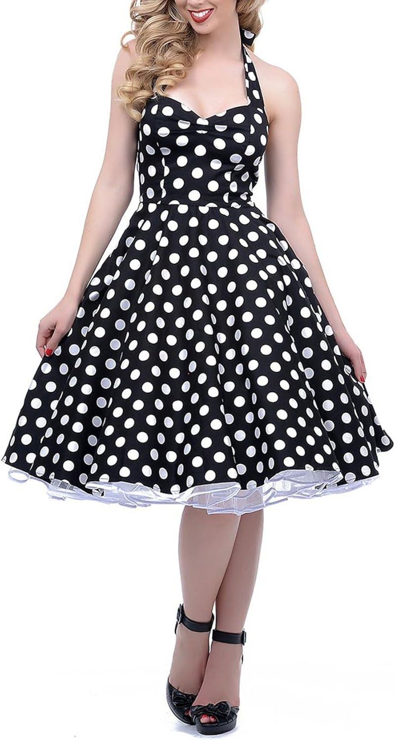 Shop the BI.TENCON 1950s Halter Polka-Dot Swing Dress on Amazon