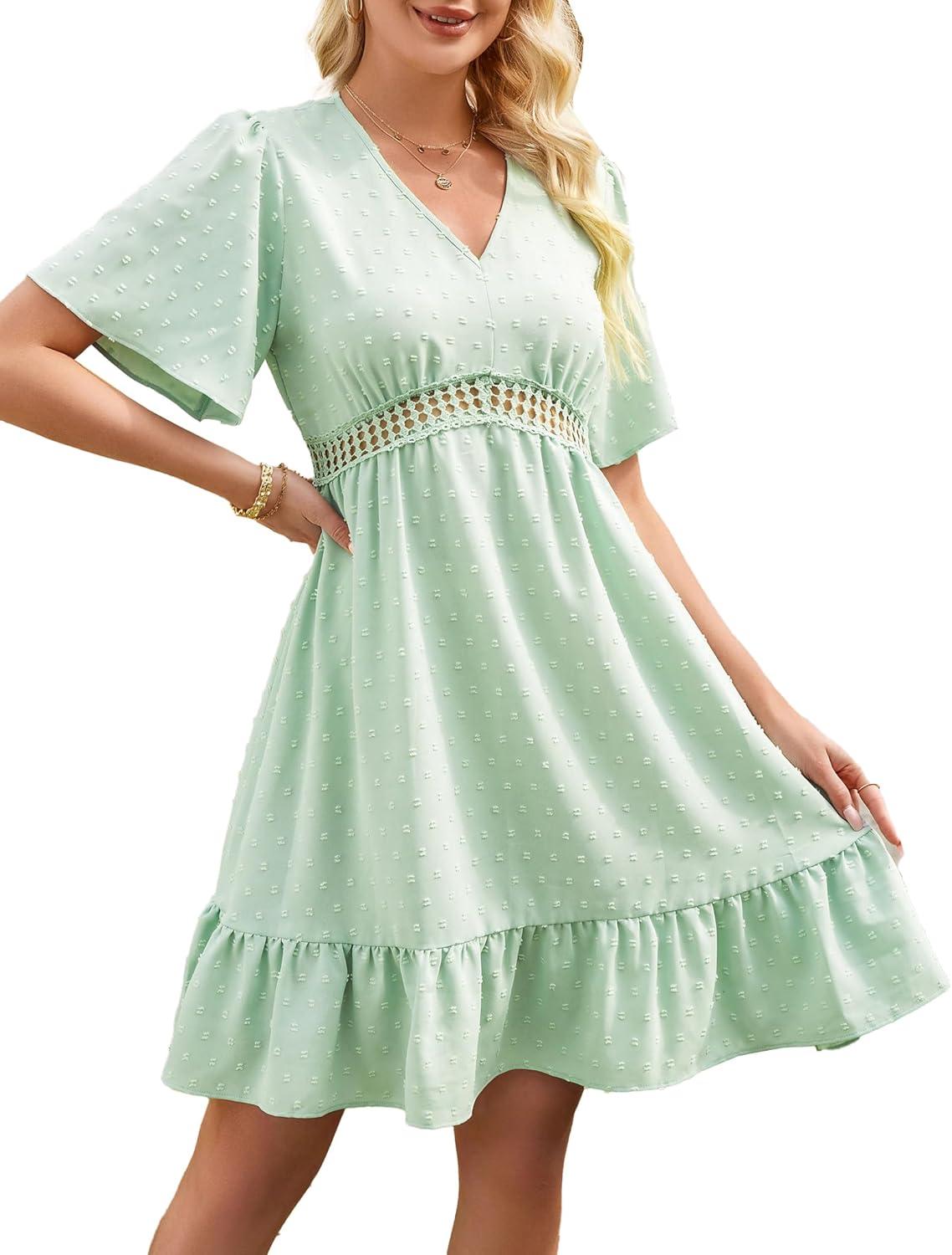 We think this dress strikes a nice balance between playful and polished — the V-neck and swing mini silhouette give a lively, flattering shape while the ruched bodice, Swiss dots and lotus-leaf short sleeves add texture and feminine detail. Overall feedback from buyers leans positive across variations,and the fact that it comes in sizes S through XXL and is machine washable makes it a practical pick for events where you want to look put-together without fuss.Key takeaways we relied on when testing: