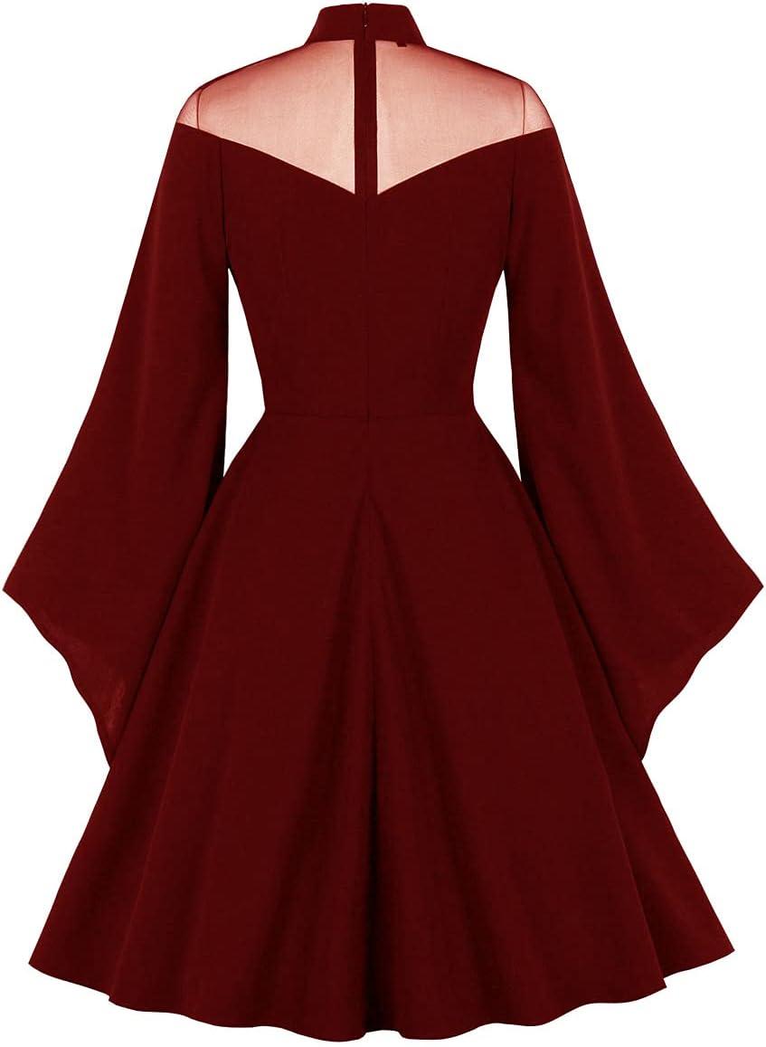 Over time you notice it slip into the quieter corners of your mornings, the dress arriving with less deliberation and more ease in regular routines. The Wellwits Women’s Mesh Bell Sleeves Halloween Gothic Vintage Dress Wine M softens where it meets the body, and comfort shifts subtly as it’s worn—sometimes warming, sometimes draping coolly in daily wear.The fabric ages in small, honest ways, a little give here, a softened edge there, so the piece feels like part of the furniture of dressing rather than an interrogation of choice. in regular routines it settles into your rotation.