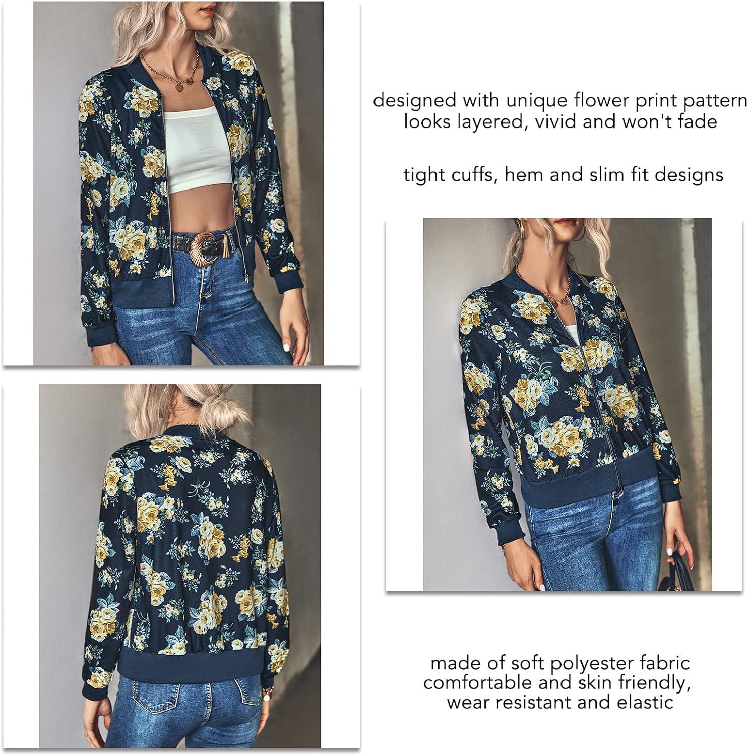 When you lift the jacket and let the fabric pass through your fingers, it moves with a soft, almost slippery give. The printed surface feels smooth rather than napped; your hand glides across the flowers and then encounters a faint, elastic snap when you stretch a sleeve. As you run your palm along a seam you’ll notice the layers sit neatly together, and the zipper track and cuff edges interrupt that sweep with firmer textures under your touch.