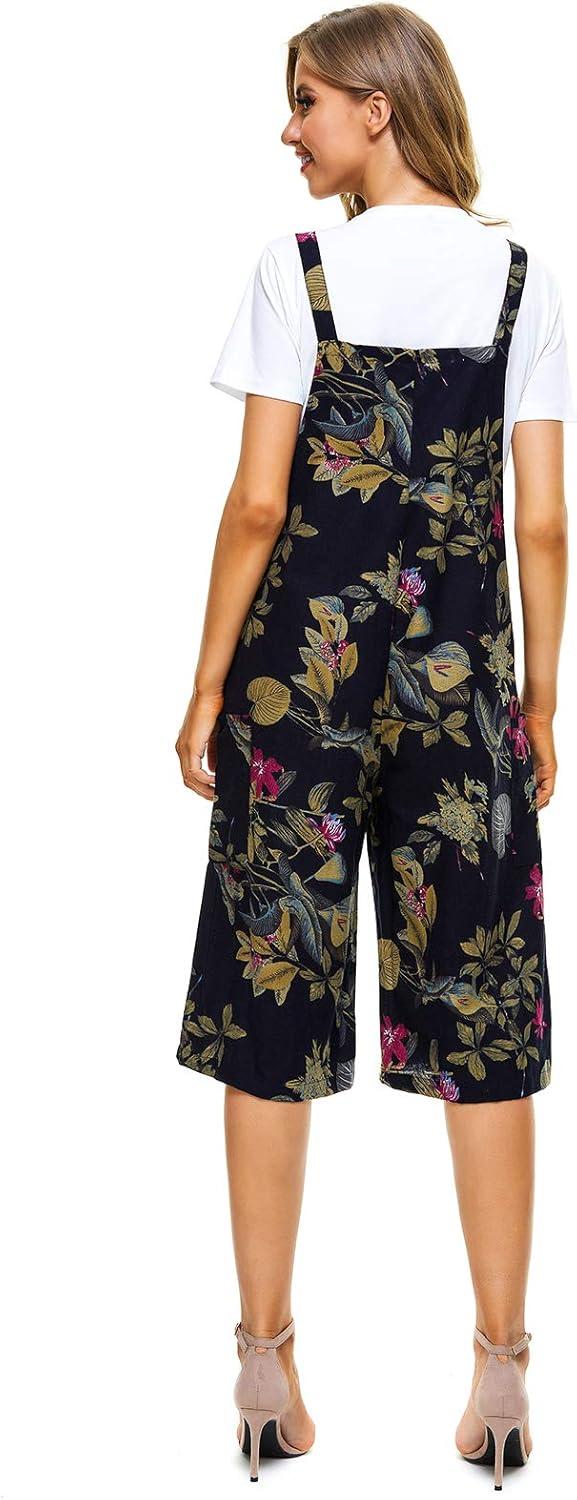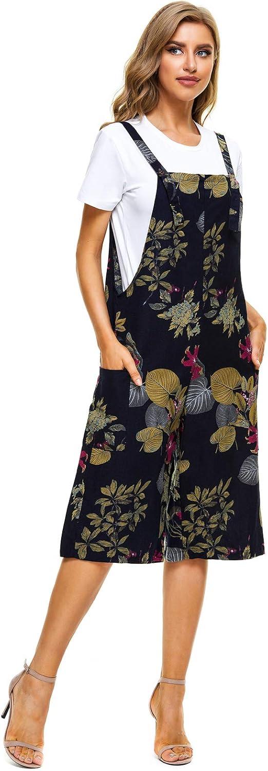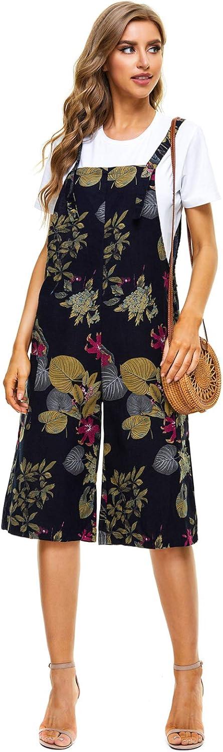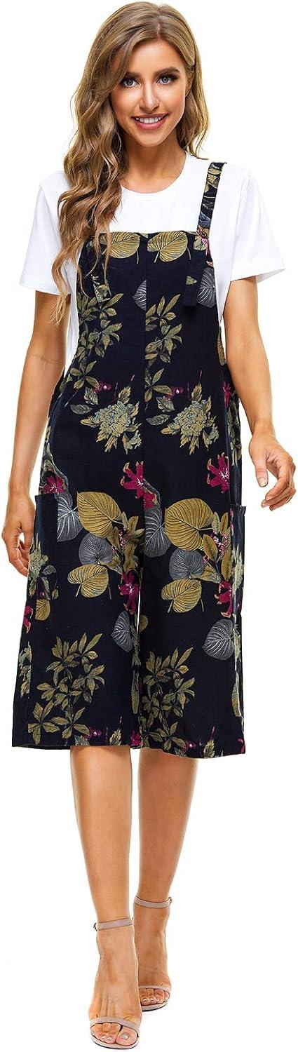 You shrug into it adn the cotton settles against your shoulders with a soft,familiar weight — not flimsy,but pleasantly substantial. The product is listed as Bohemian Style’s Women Boho Overalls Jumpsuit Rompers with Pockets Floral Straps Jumpers, though you’ll likely just think of it as the boho overalls when you move.The wide legs fall in a lazy, even drape and the fabric pools at the hem or crops at the knee depending on the length, showing a cotton with enough body to hold shape while still breathing. As you sit, seams lie flat and the straps shift without tugging; in those first moments of wear the piece feels quietly structured, the matte floral catching light where motion gathers.
