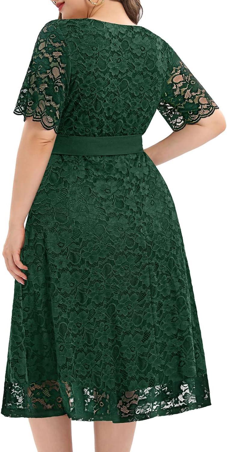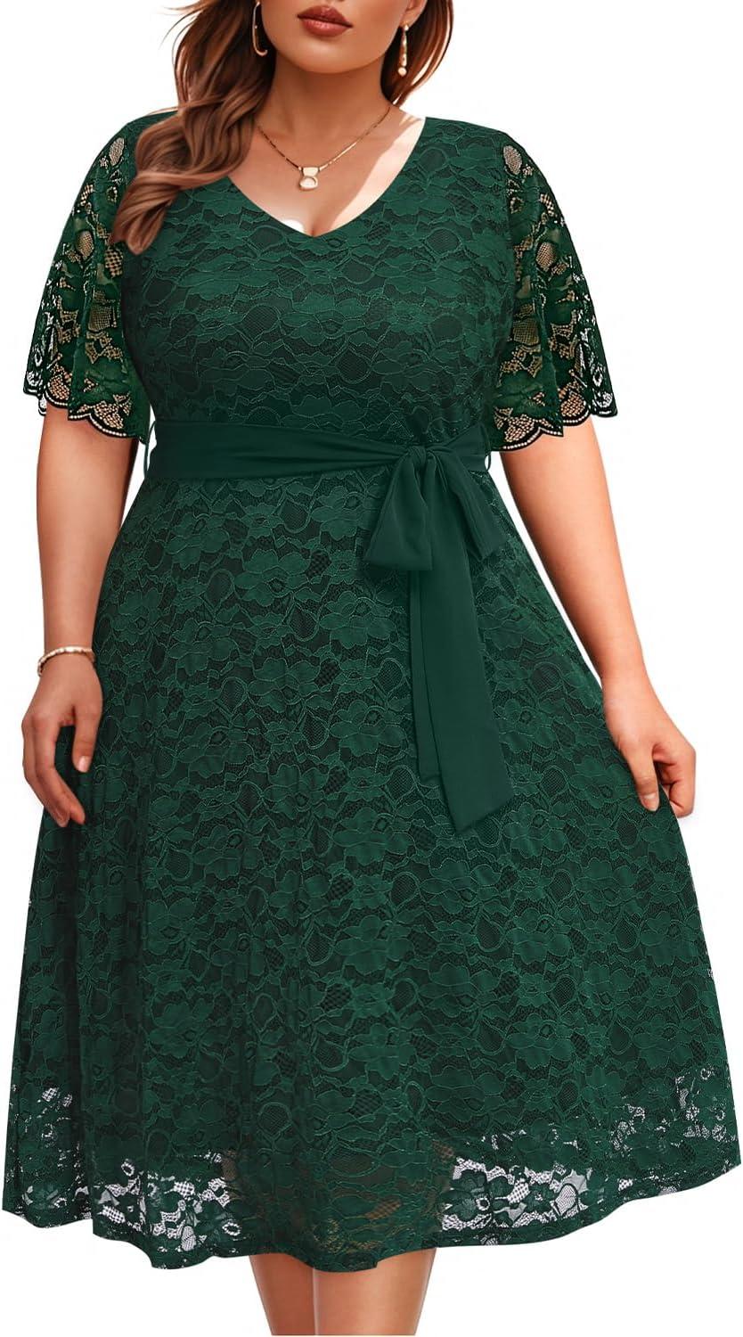 You notice, in daily wear, how the Women Plus Size Lace Bridal Shower Wedding Guest Cocktail Semi Formal V Neck Short Sleeve Midi Dresses eases into the background of routine dressing, softening as it is indeed lived in. Comfort becomes a matter of habit — small adjustments, less thought required, the fabric giving a touch more with each wear — and that behavior settles into regular routines. Over time the material quiets and ages into familiarity, holding an everyday presence rather than announcing itself. It becomes part of rotation.