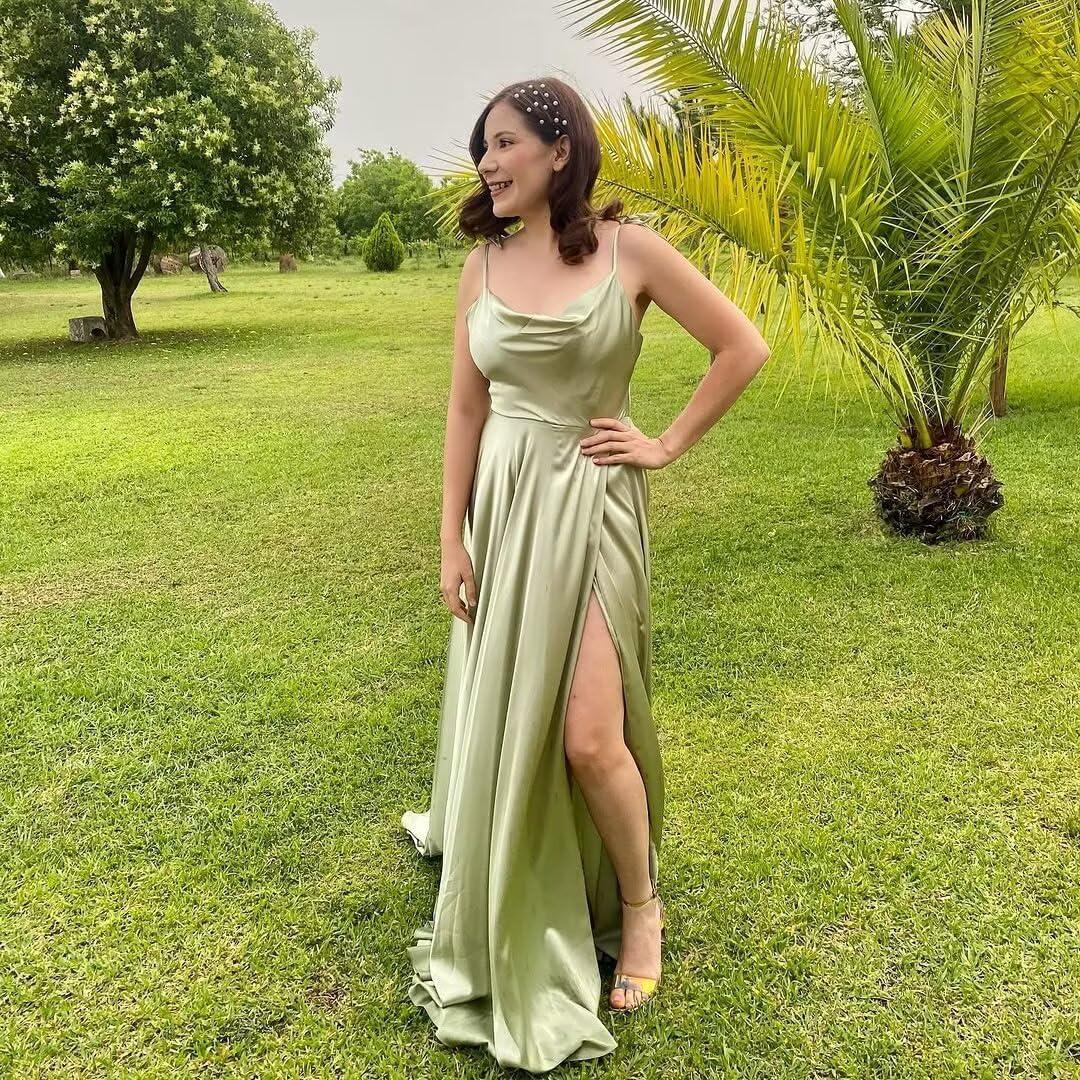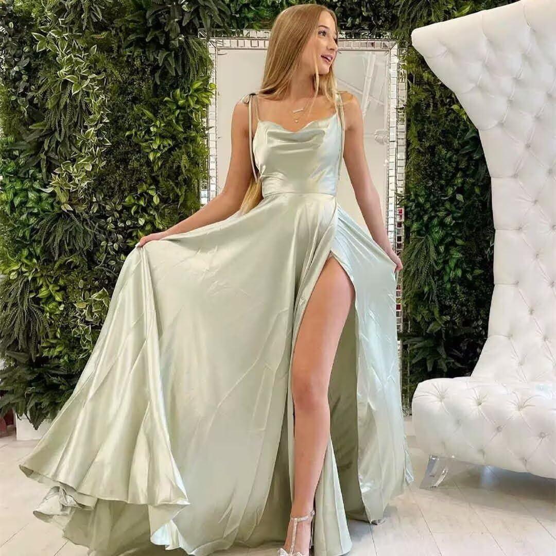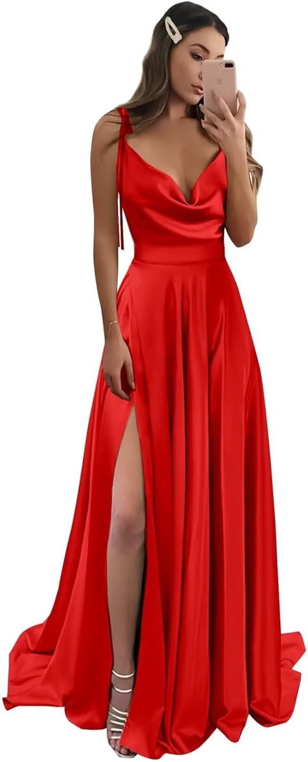 The dress delivers where a graceful drape and longline silhouette ⁣were expected: the cowl neck‌ settles into a soft fold across the chest and the bias-cut ‍of the bodice lets the skirt skim the hips as the wearer moves. The slit opens and closes naturally with each​ step, creating brief flashes‍ of leg that align⁤ with walking and turning. Spaghetti straps sit lightly on the shoulders and the ruched panel reads as subtle texture from a short distance, while the sheen of⁣ the outer layer catches light‍ in motion, adding a gentle highlight to⁤ torso and skirt planes.