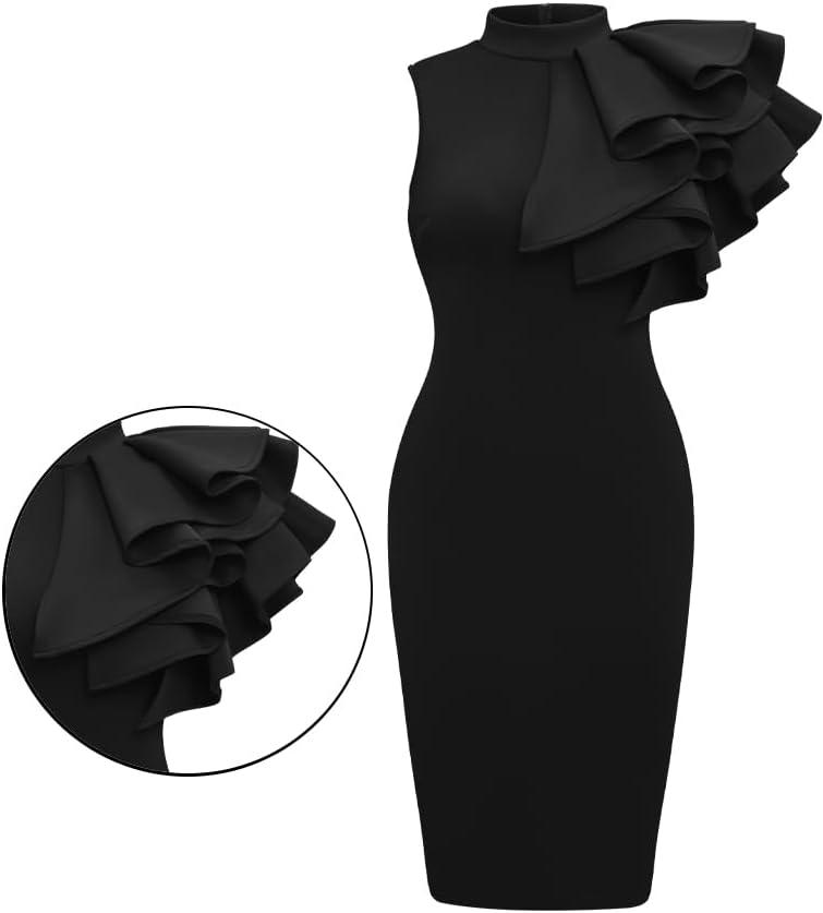 This dress⁢ beautifully combines modern flair with ‍classic elegance through its sleeveless, ⁣body-hugging silhouette. ‍Featuring layered ruffle details on one‍ shoulder, it instantly adds a‍ touch of playful sophistication without overwhelming the overall look. Crafted from a blend of polyester and spandex, the fabric ‍offers a perfect balance of stretch and breathable comfort, which makes this midi pencil dress ideal for those long evenings where style and ⁢ease are equally critically important.
