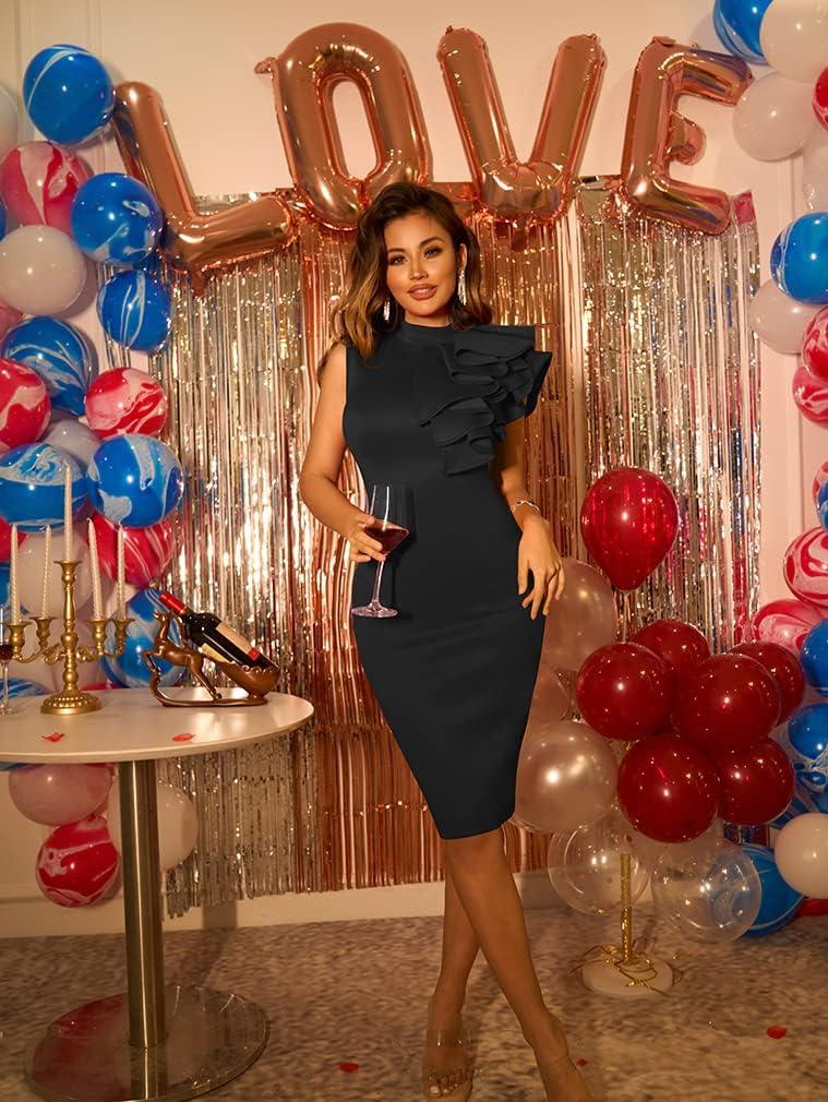 This dress⁢ truly stands out for ⁤its adaptability across a wide range of events. Whether we’re attending a business ​function, a lively party, or even a⁣ sophisticated wedding, it manages to strike the perfect ⁢balance between elegance ‌and allure. The⁤ sleeveless, ruffle-detail silhouette​ gives us a polished yet distinctive look that fits seamlessly from formal gatherings to more relaxed nights out. Its midi length and bodycon fit accentuate our figure while maintaining a tasteful and refined appearance.